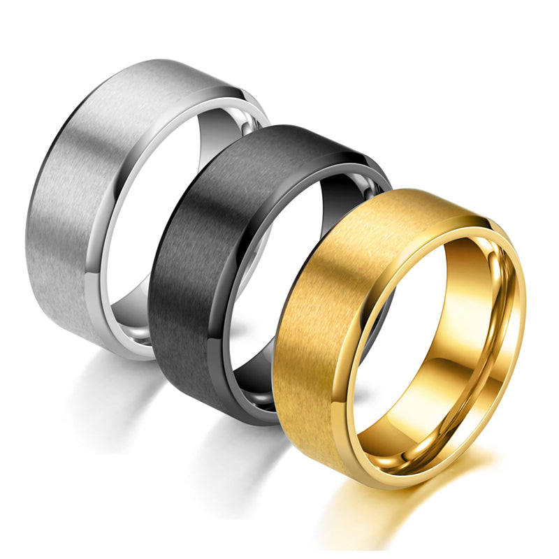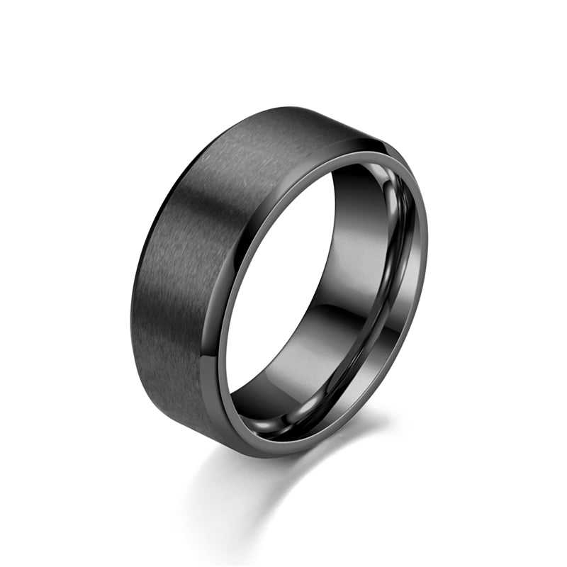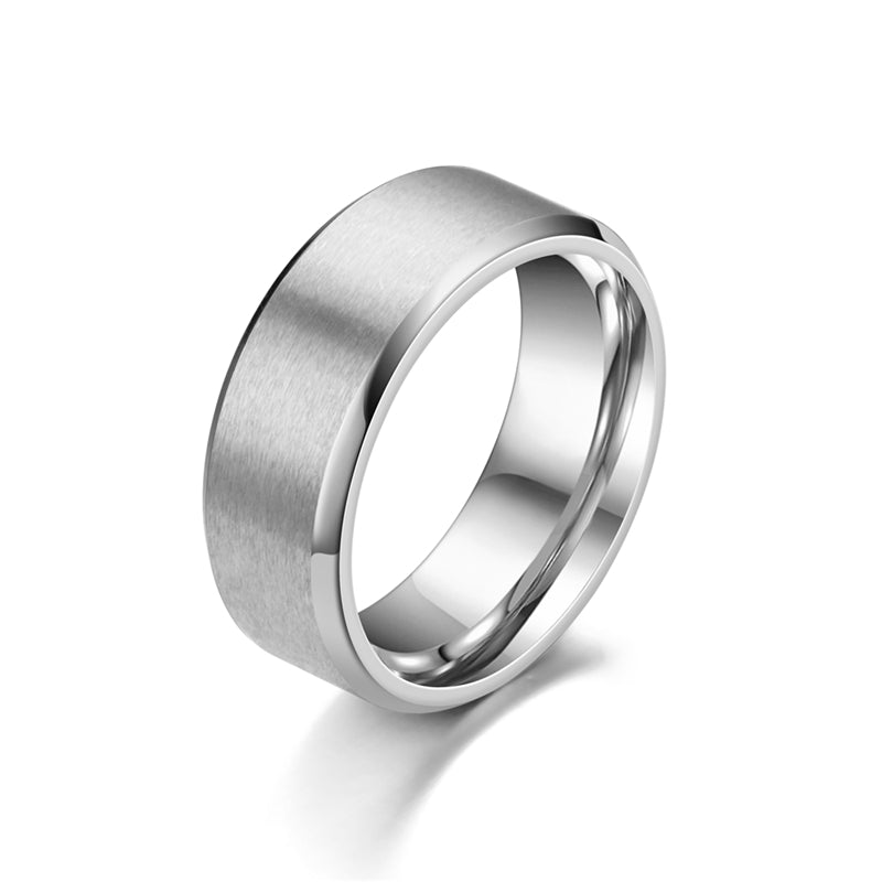 Elevate your style with this fashionable stainless steel ring featuring a frosted double bevel design.