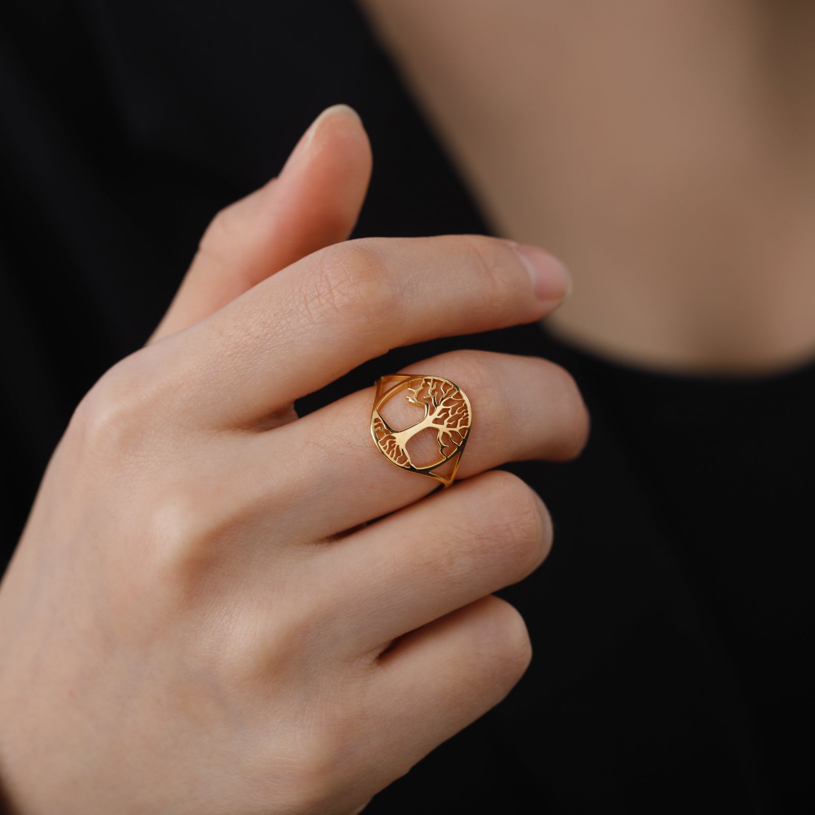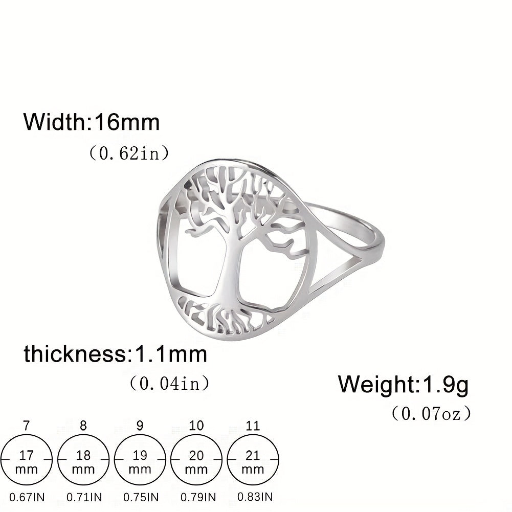 This ring features a hollow tree of life design, crafted from stainless steel. It is a unique Viking amulet jewelry piece.