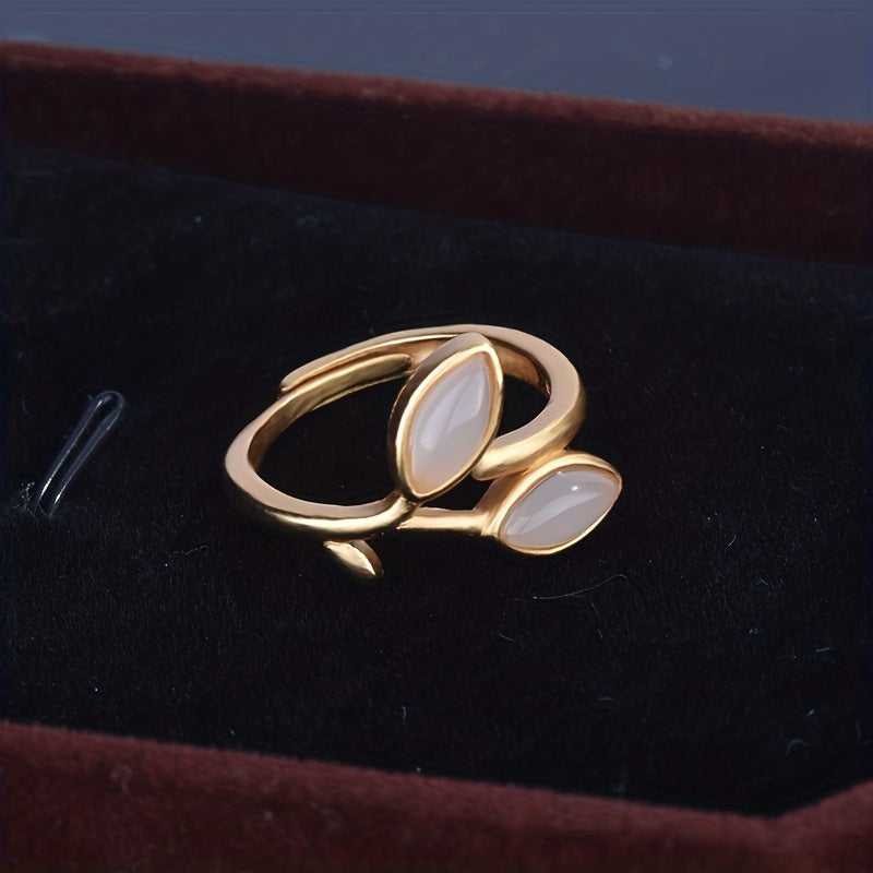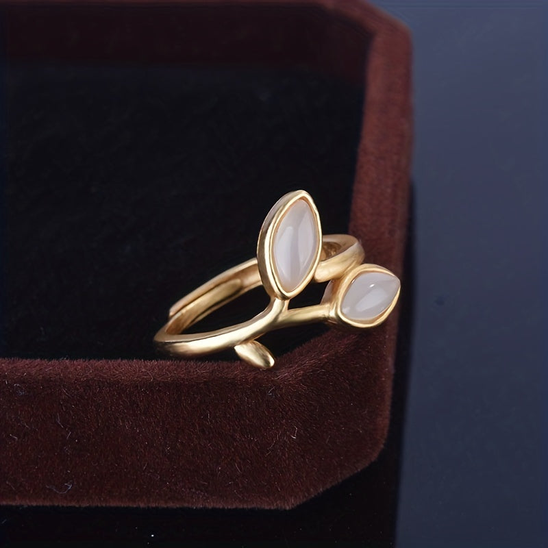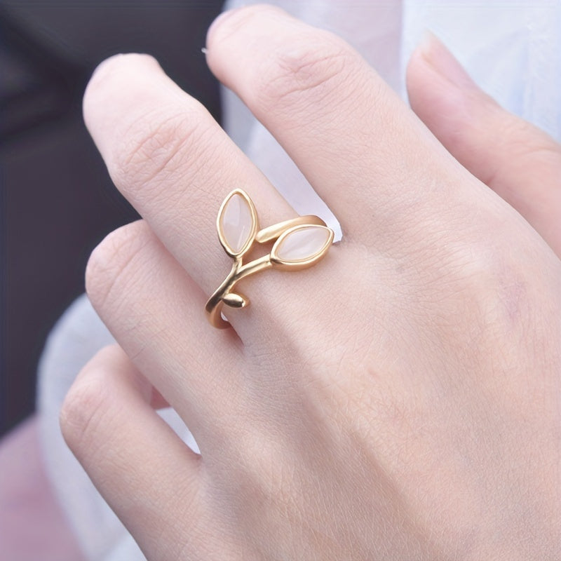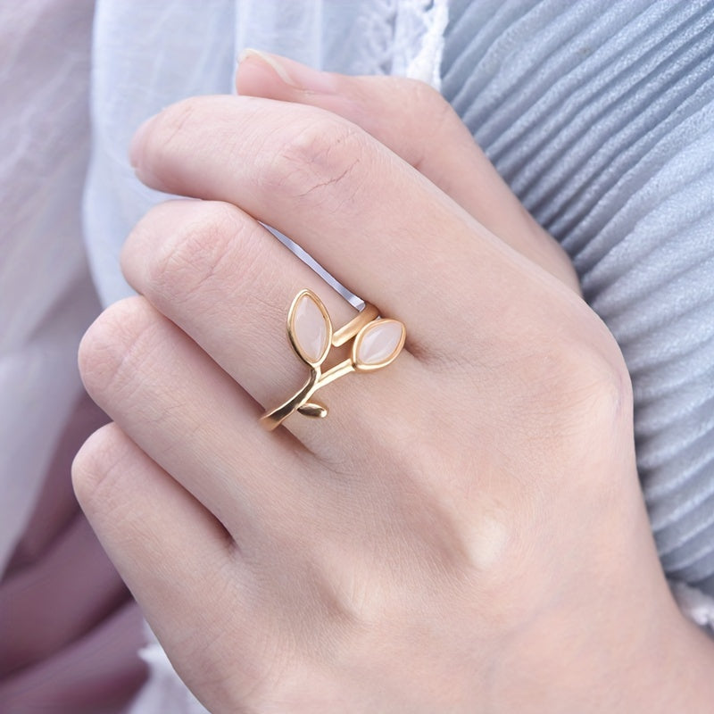 This stylish olive leaf ring is a versatile accessory that can be easily adjusted to fit any finger size.