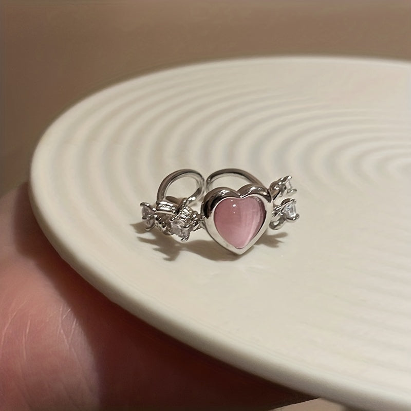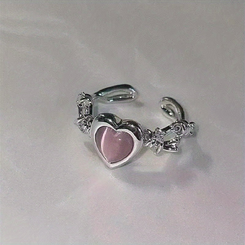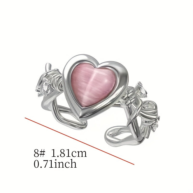 This unique ring features a pink heart thorns cat eye stone with zircon accents. It offers a sweet style and adjustable fit, perfect for women with a charming temperament.