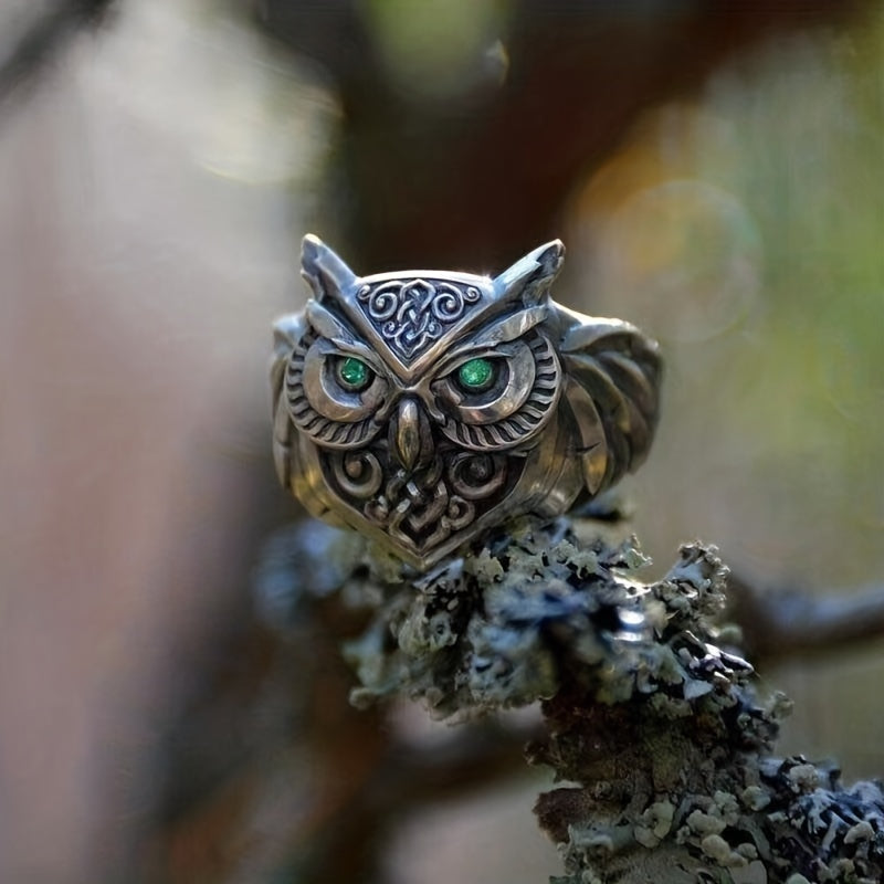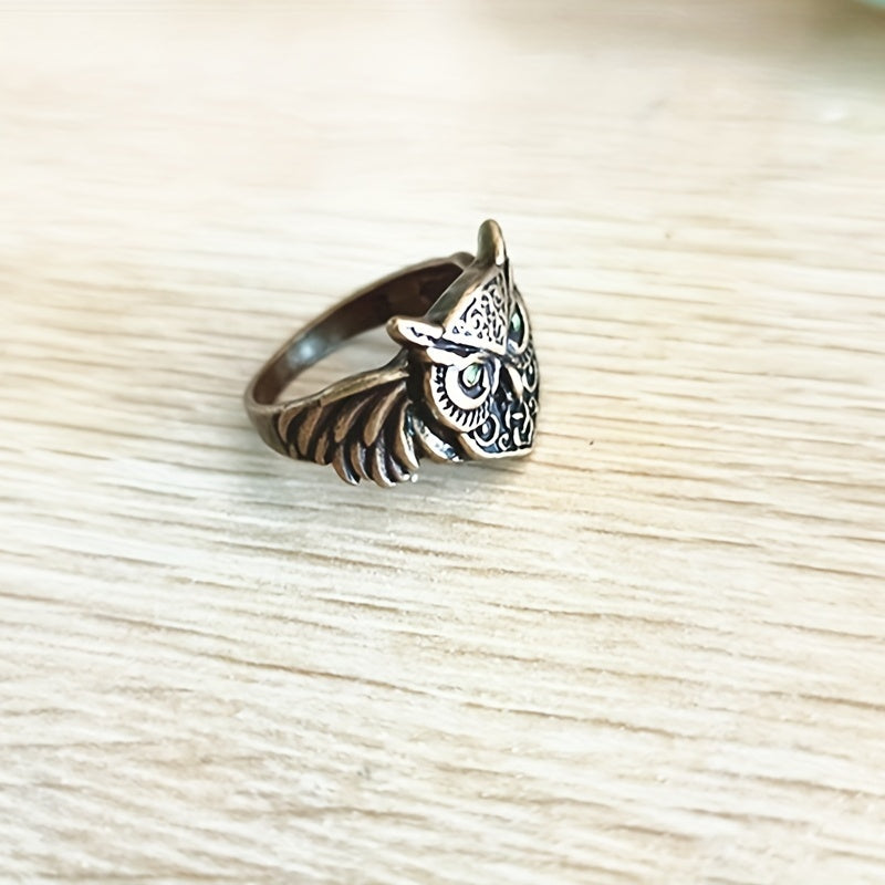 Add a touch of cool hip hop style to your outfit with this retro owl ring. The ring features an engraved pattern for a unique look that stands out.