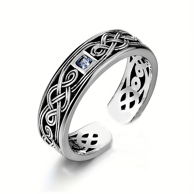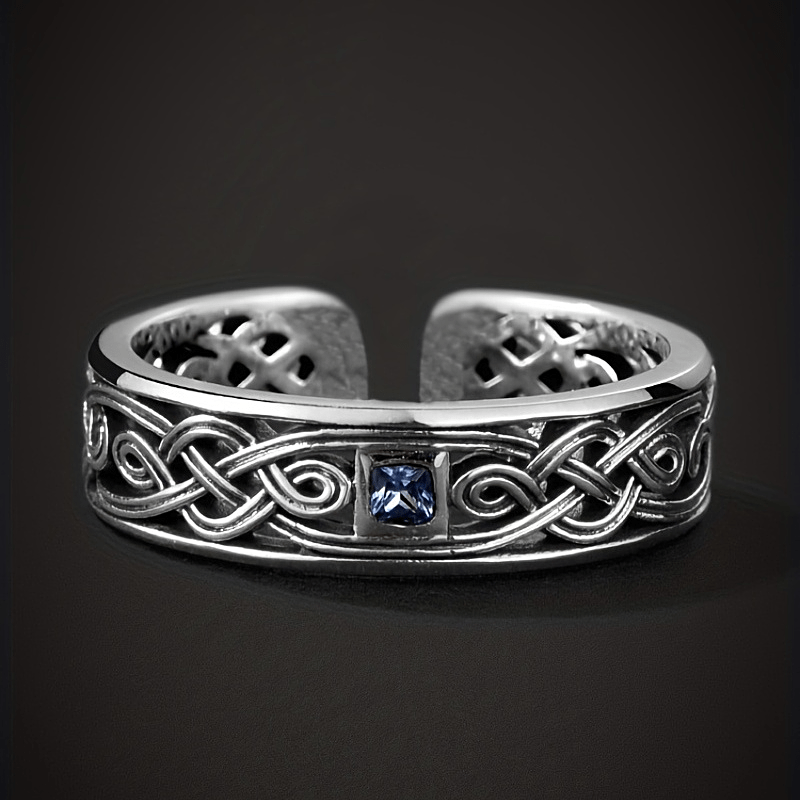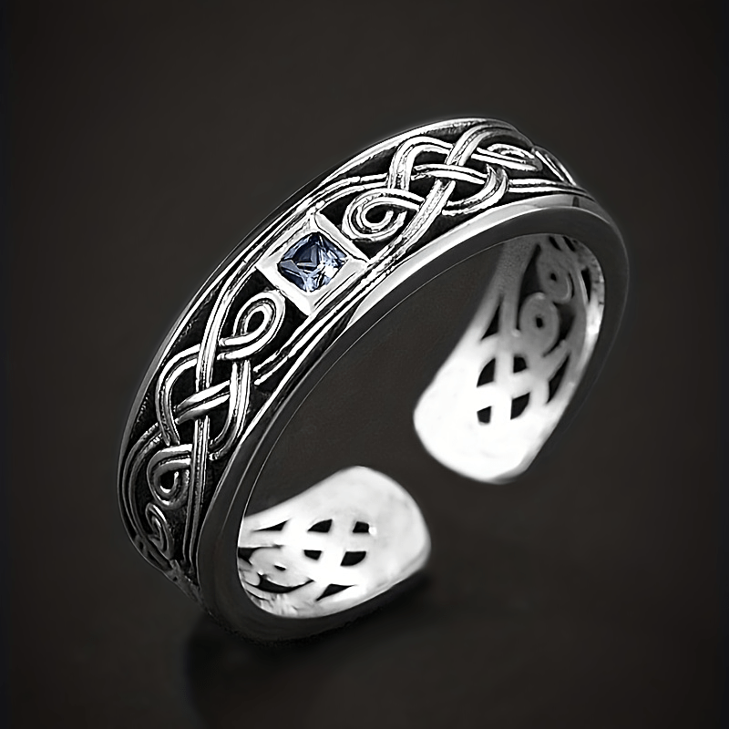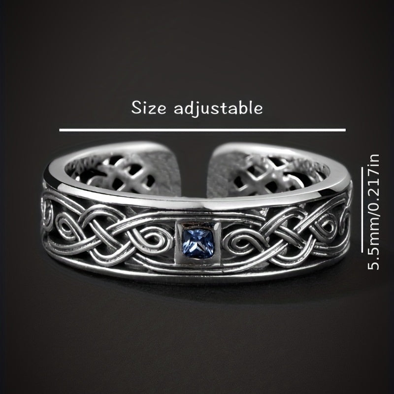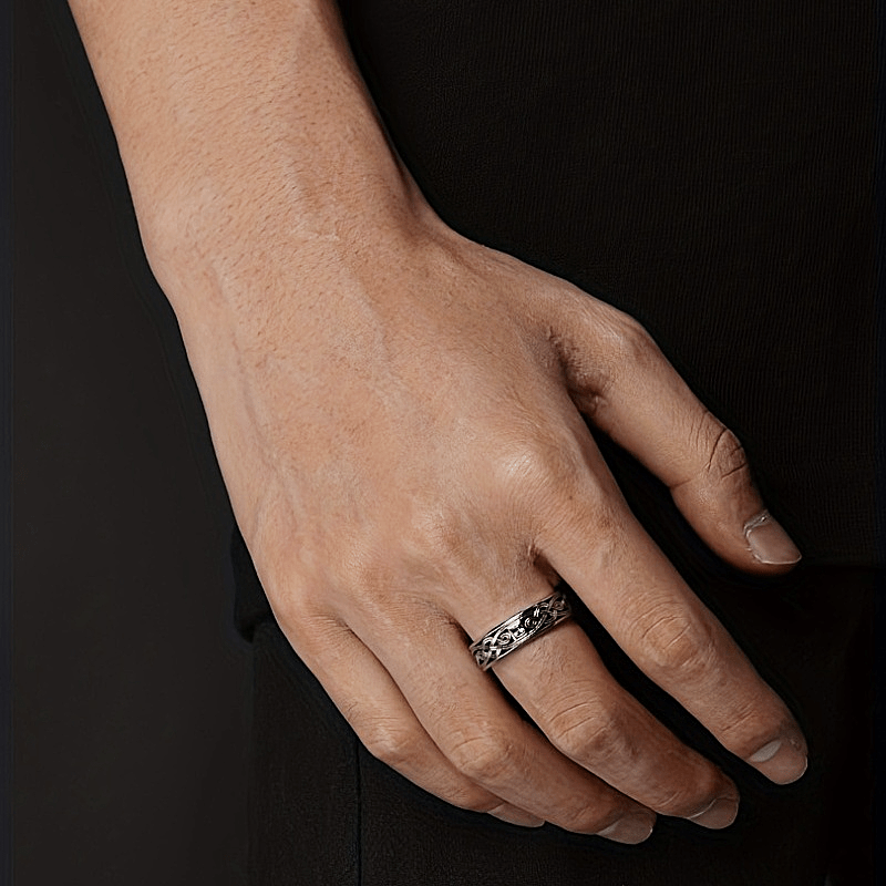 Men's Retro Diamond Hollow Out Wavy Striped Ring Adjustable