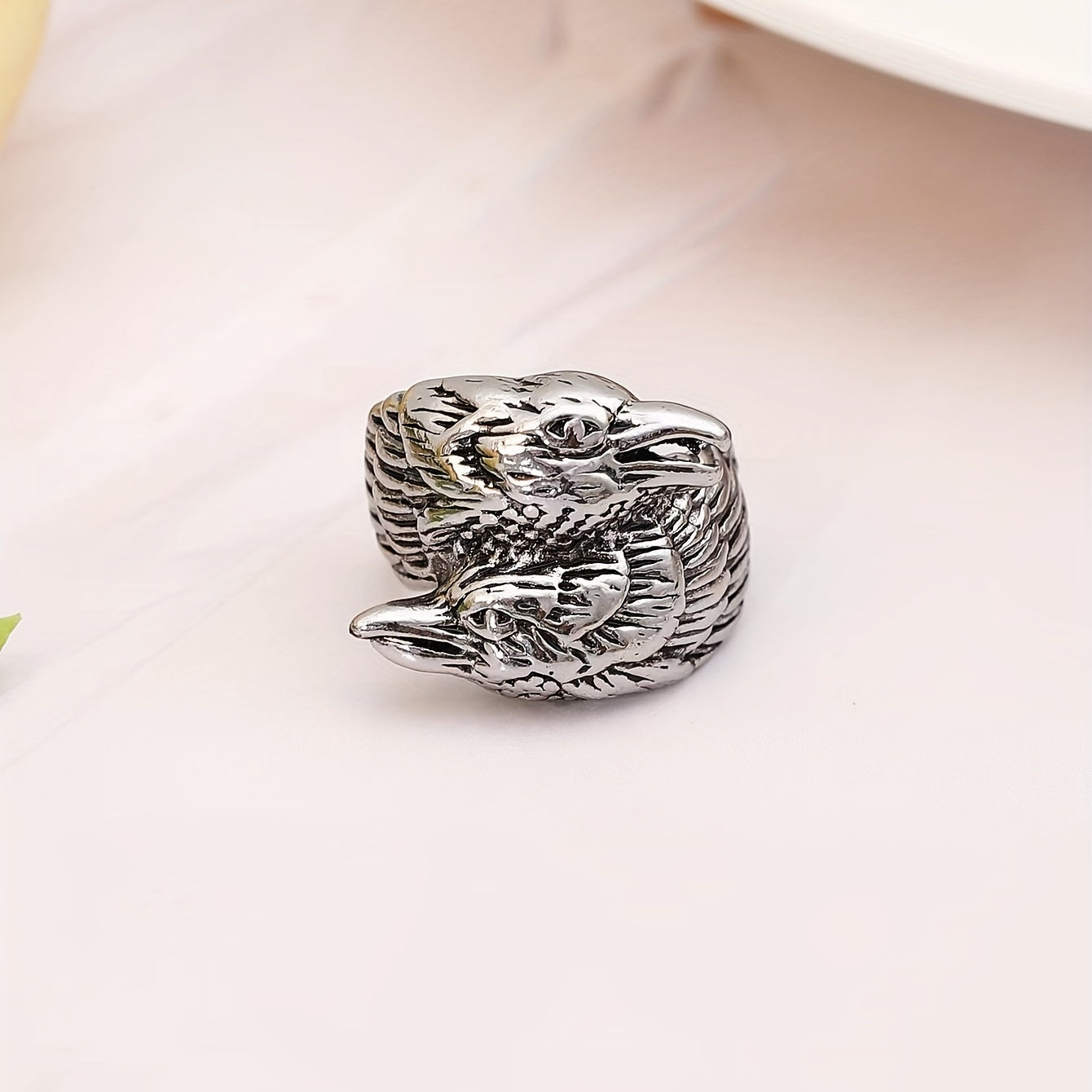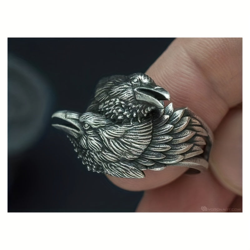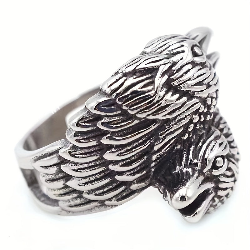 This domineering ring features a unique double-headed bird design. Make a bold statement with this stylish piece of jewelry.