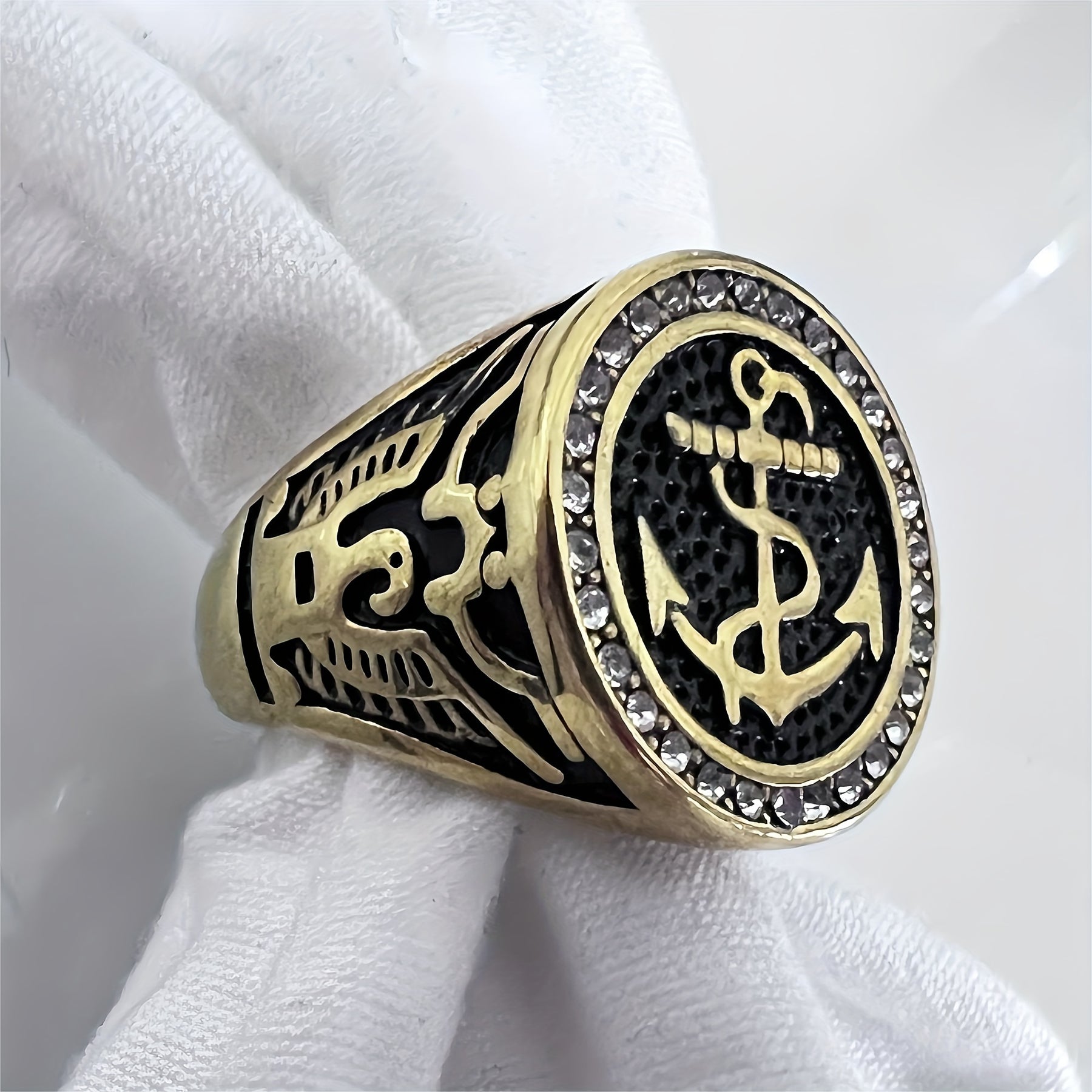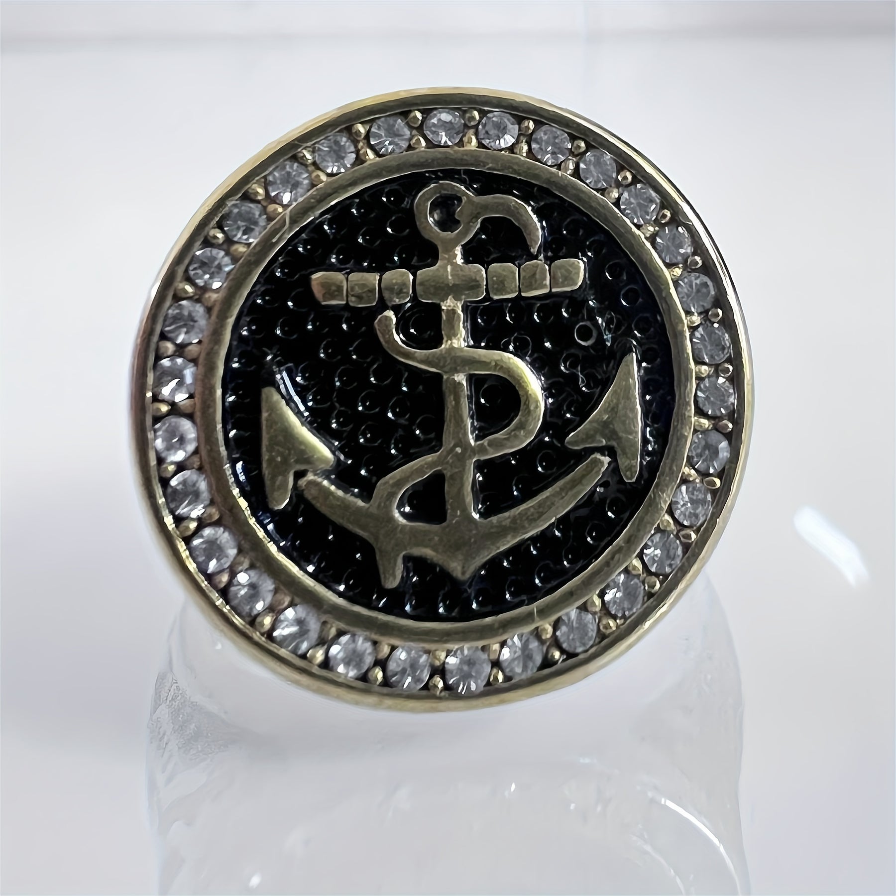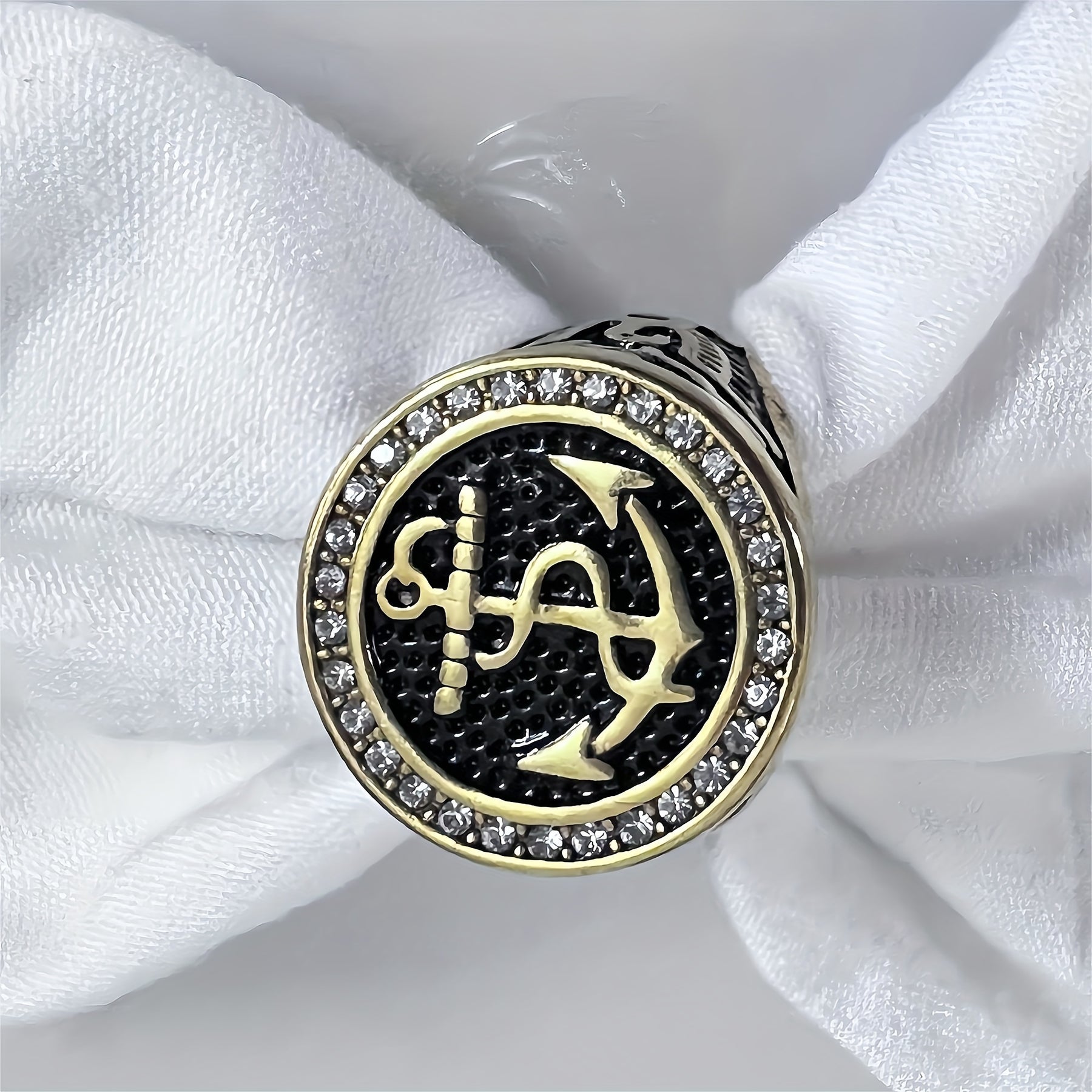This stylish men's ring features a rhinestone anchor design crafted from durable stainless steel, perfect for hip hop enthusiasts.