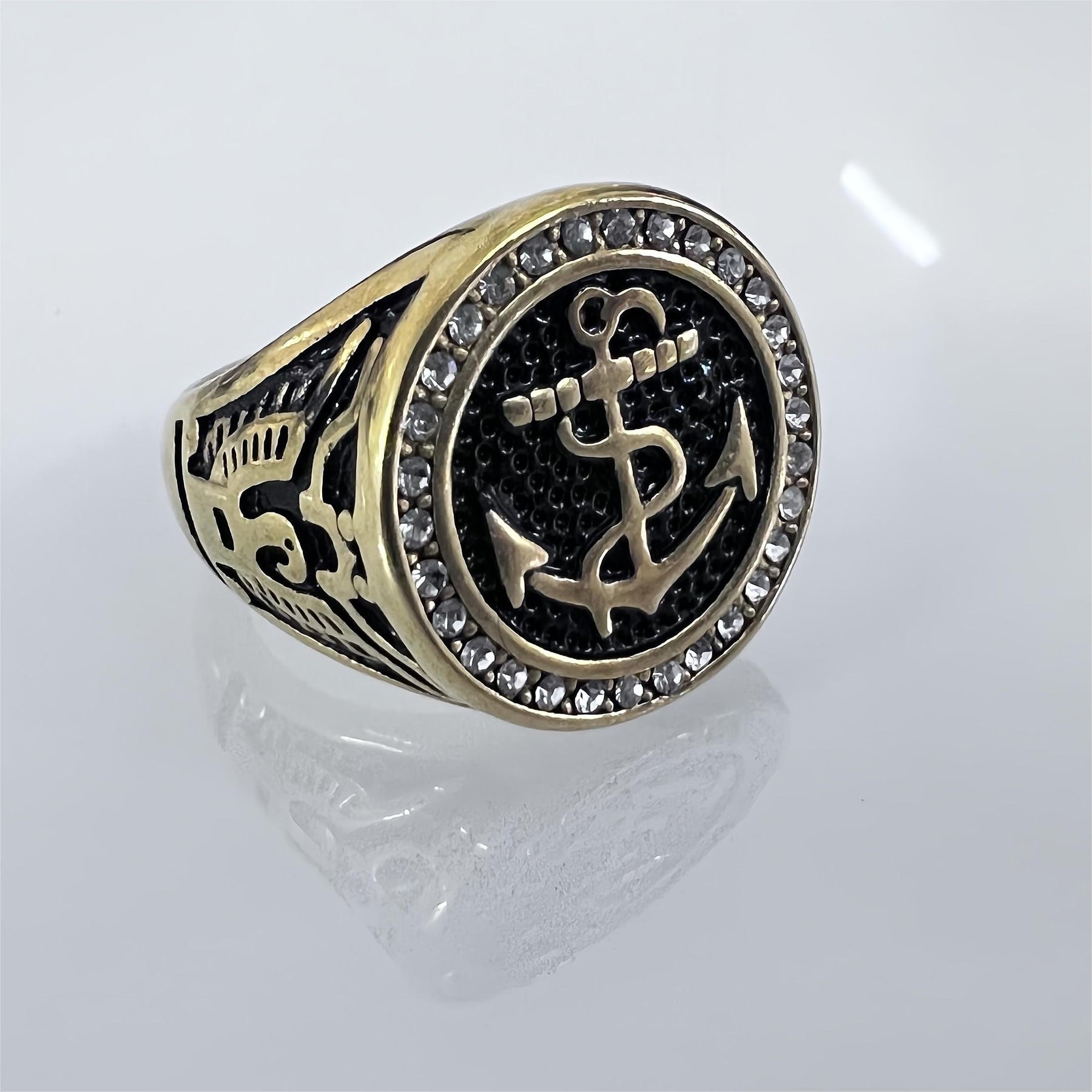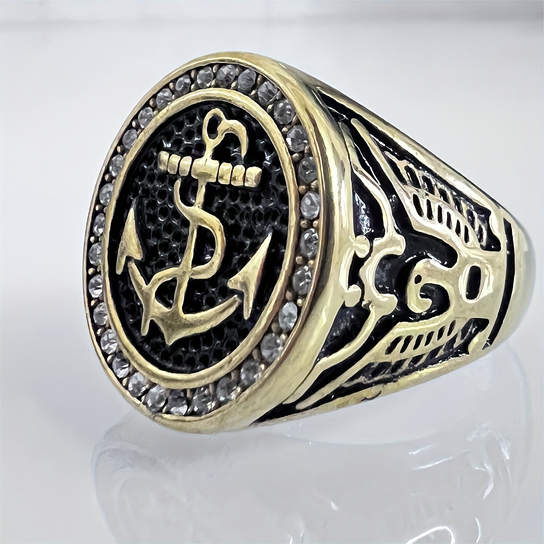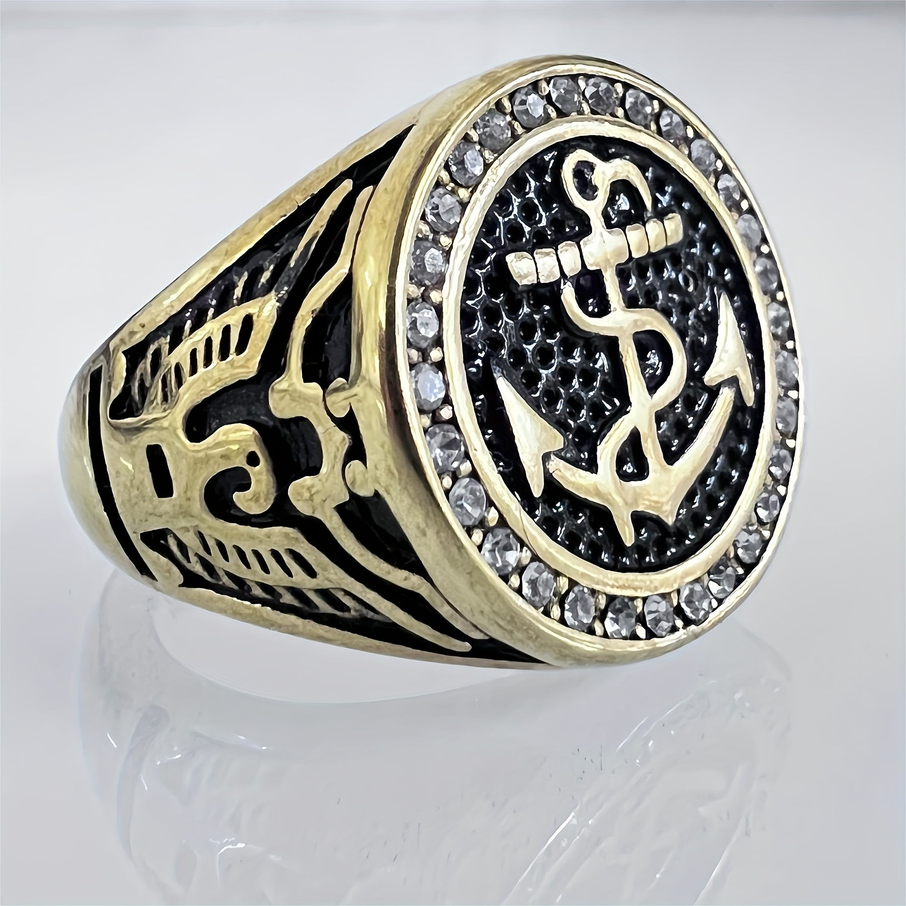 This stylish men's ring features a rhinestone anchor design crafted from durable stainless steel, perfect for hip hop enthusiasts.
