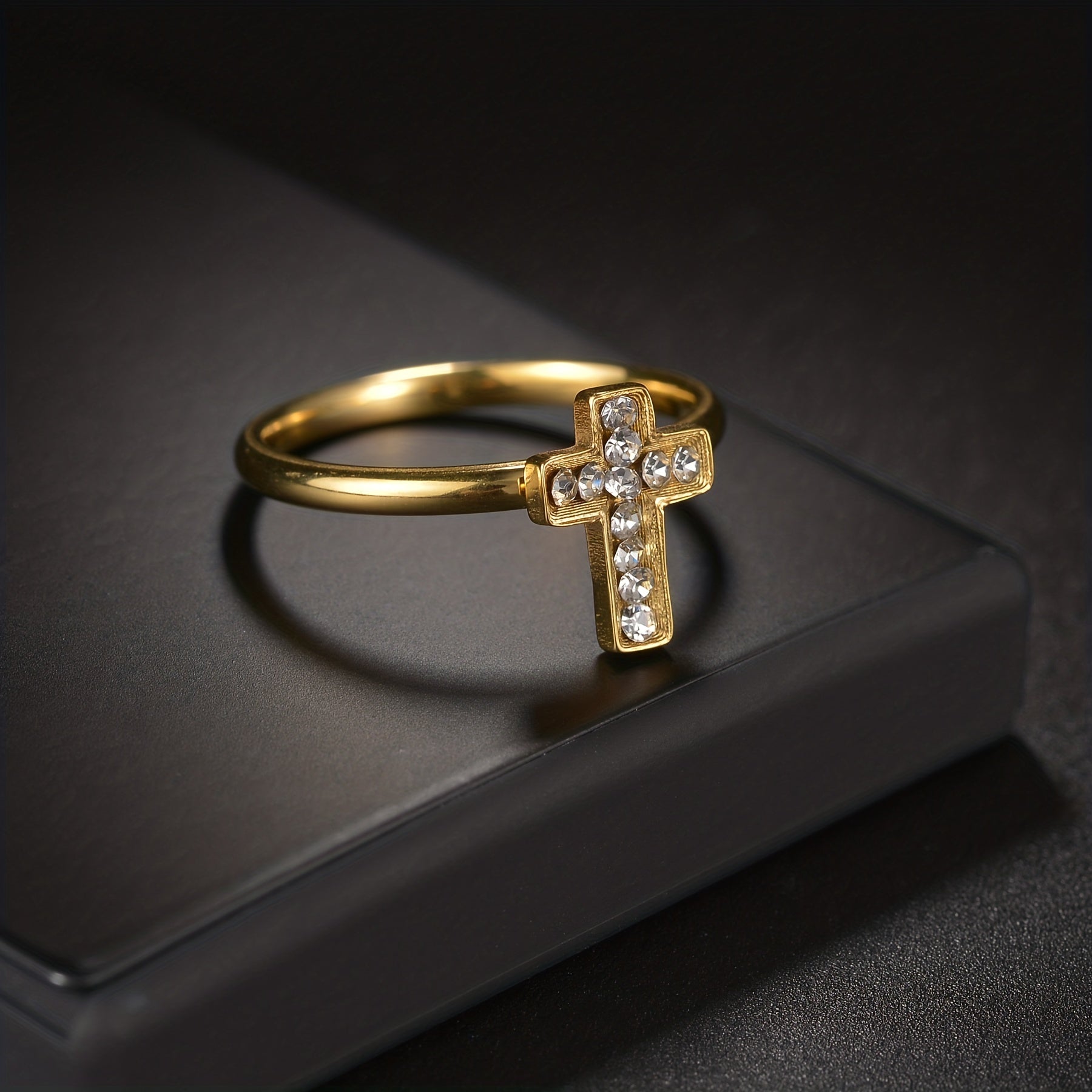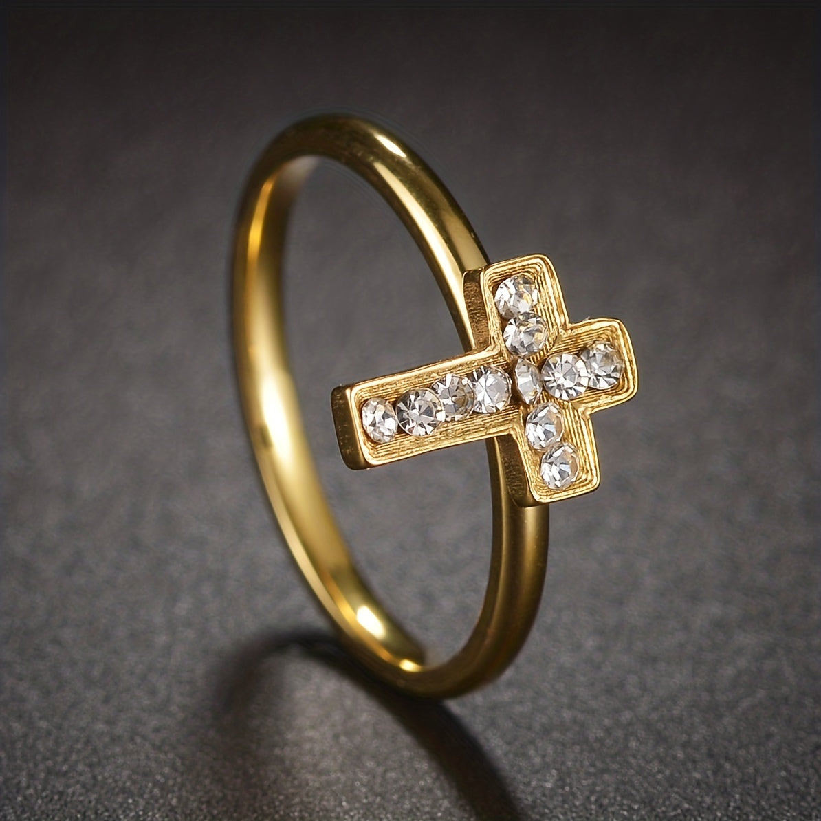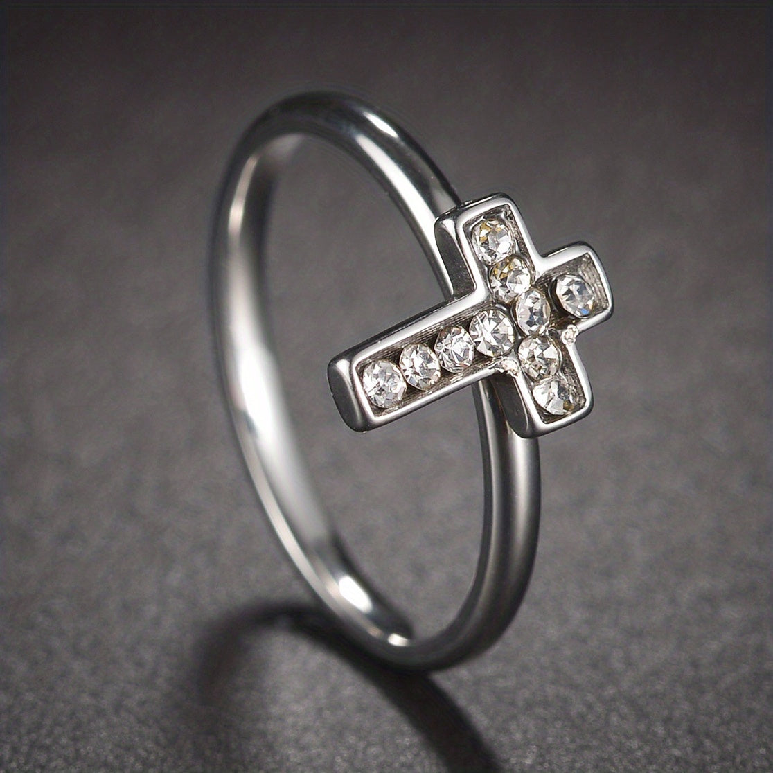 This stylish men's ring features a dazzling rhinestone cross design. Perfect for adding a touch of faith to any outfit.