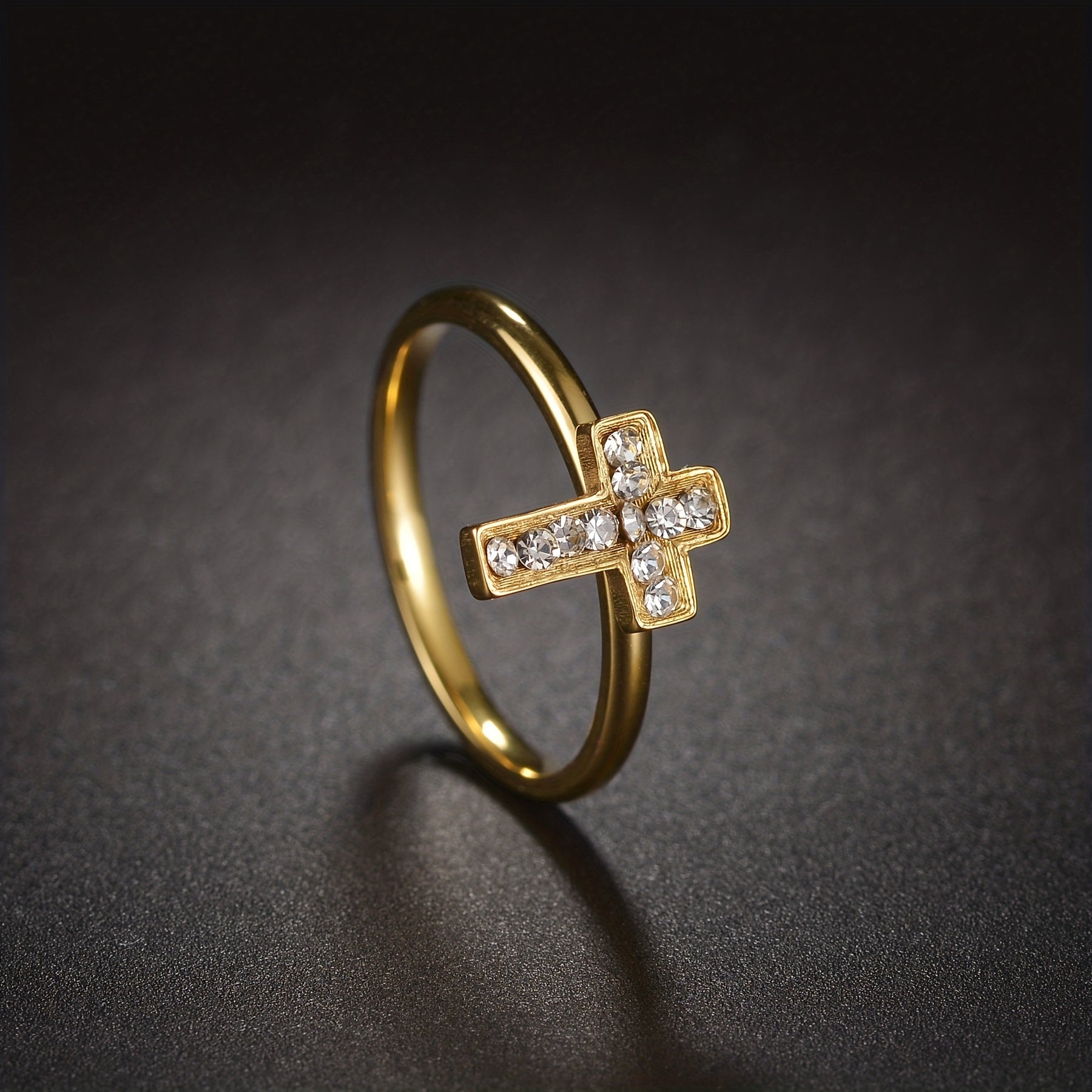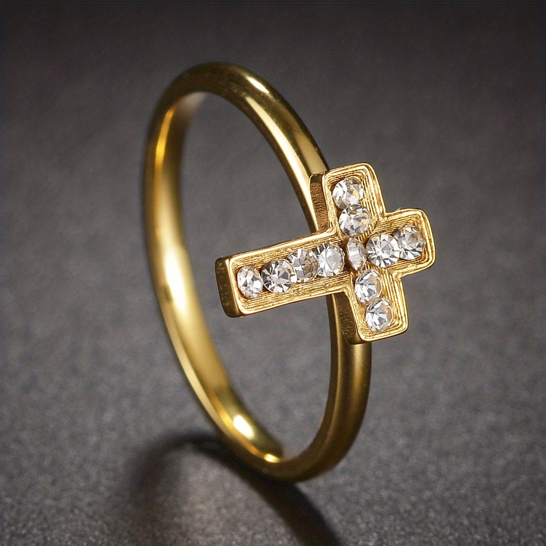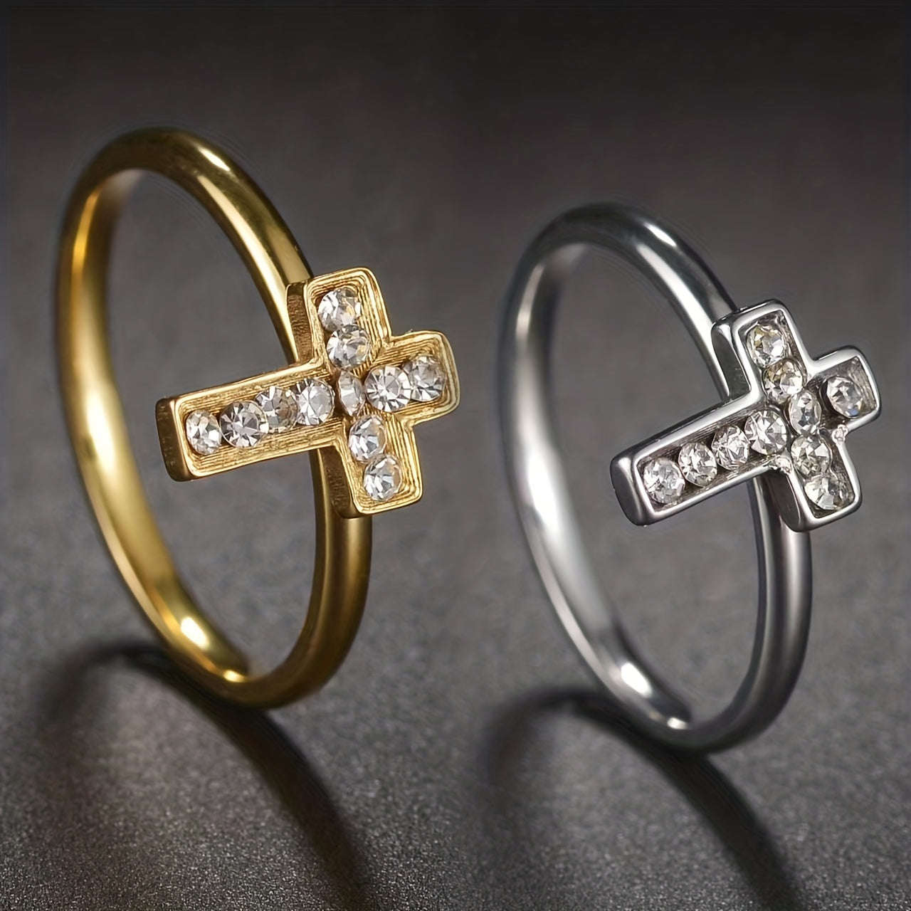 This stylish men's ring features a dazzling rhinestone cross design. Perfect for adding a touch of faith to any outfit.