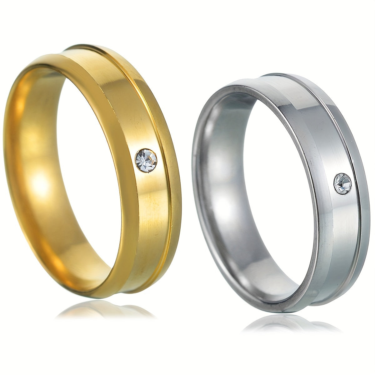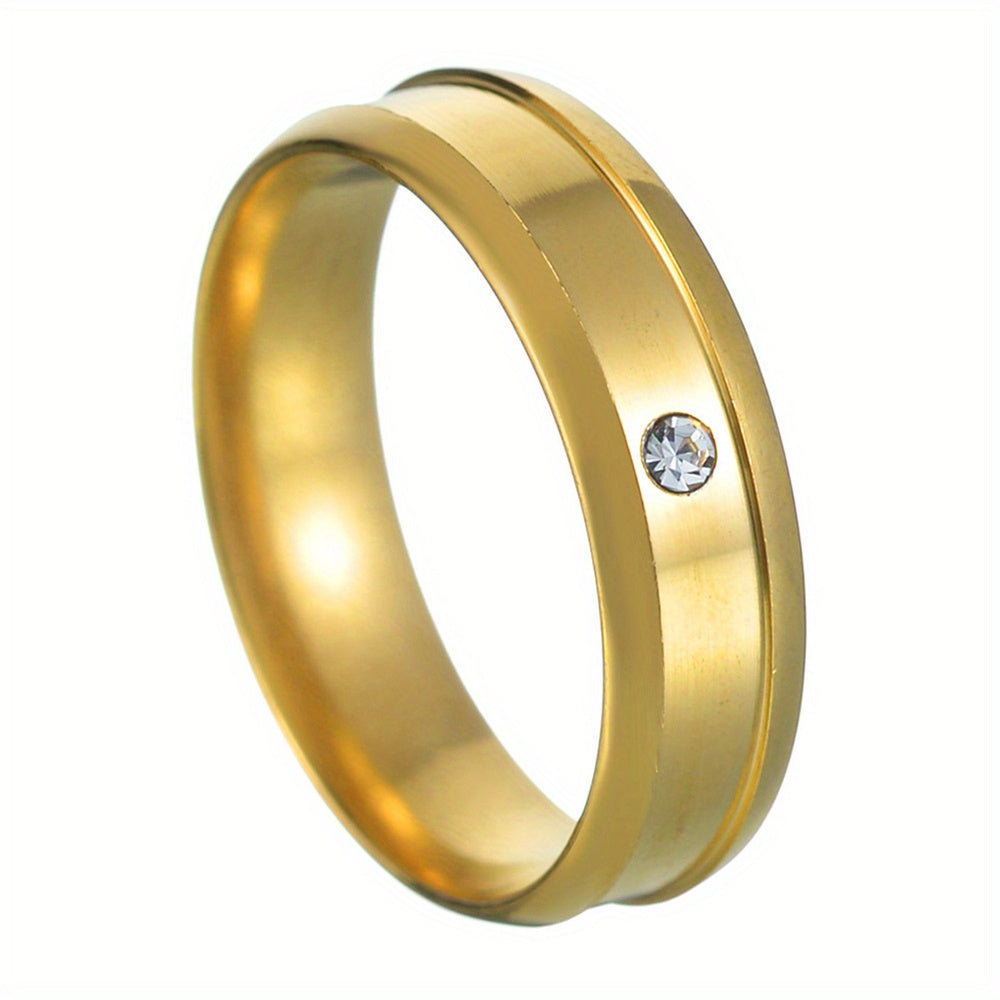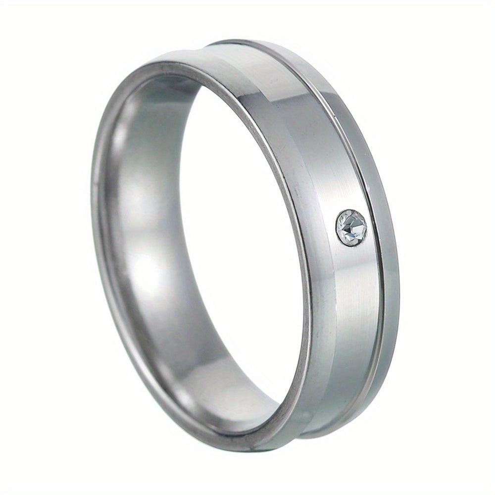 This classic ring features rhinestone decoration and a middle groove crafted from stainless steel. Ideal for couples.