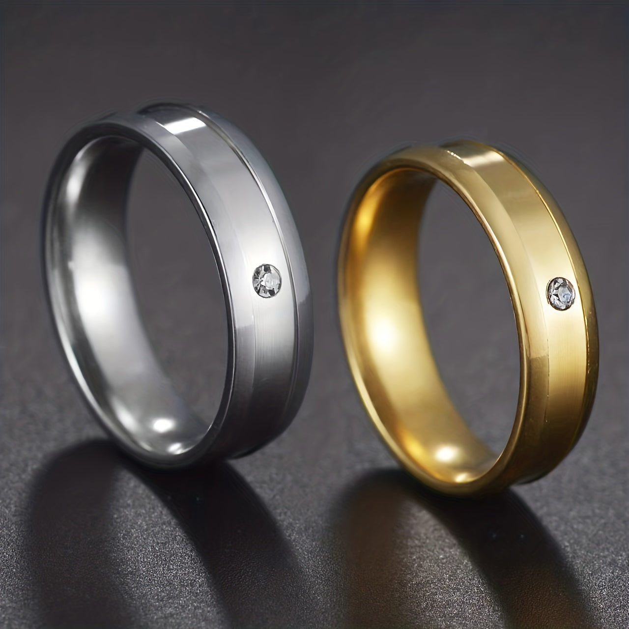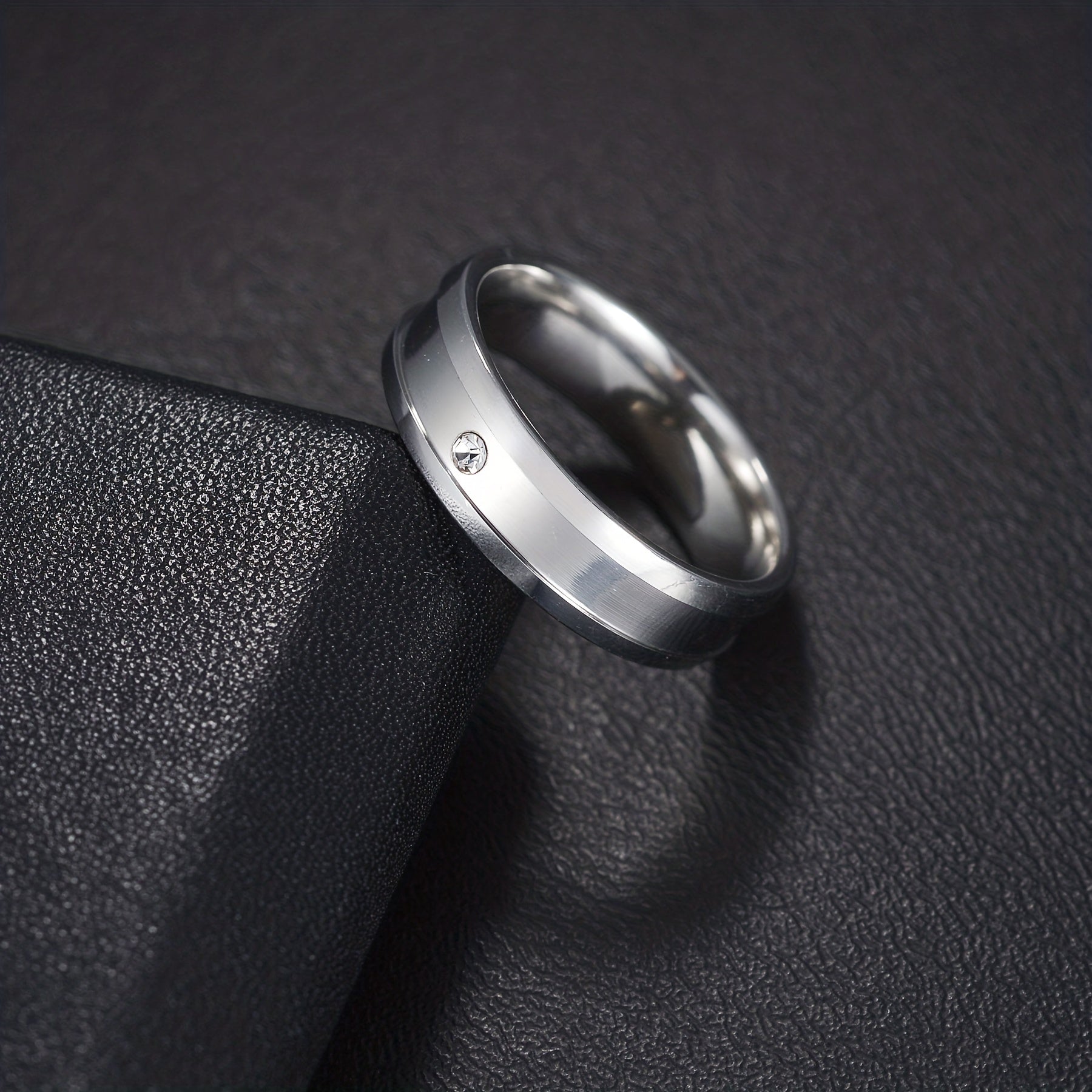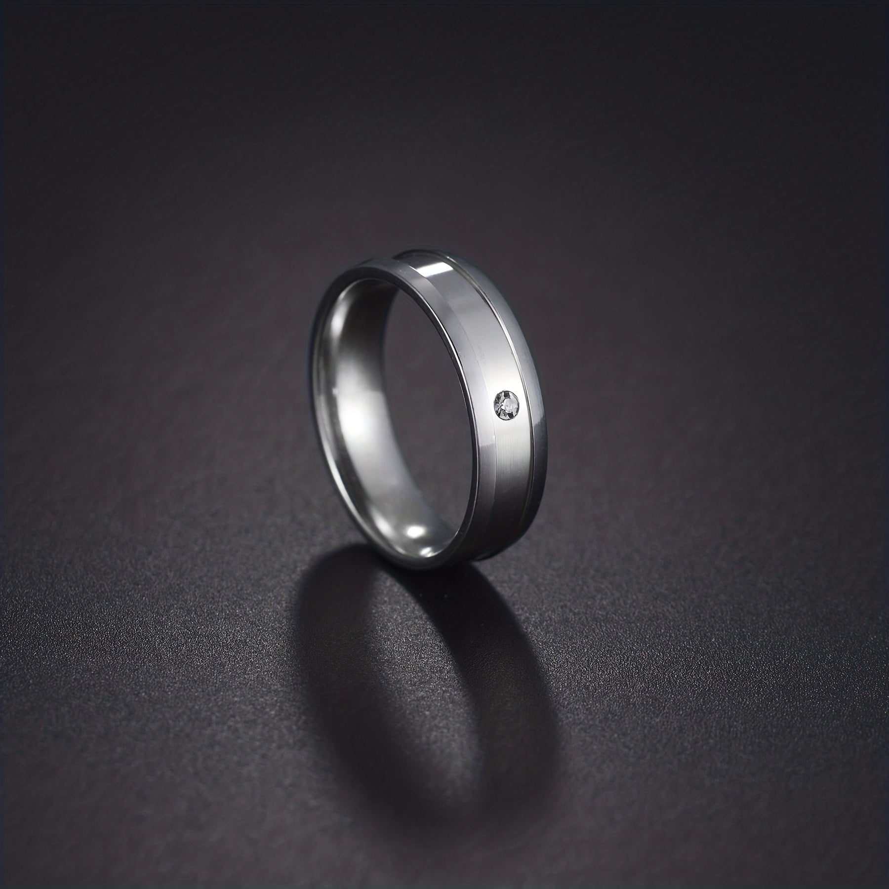 This classic ring features rhinestone decoration and a middle groove crafted from stainless steel. Ideal for couples.
