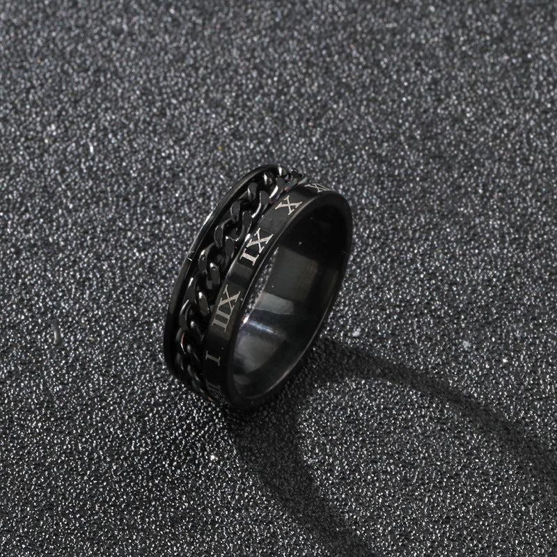 This stylish ring features five marked Roman numerals that can be rotated. It adds a unique touch to your look.