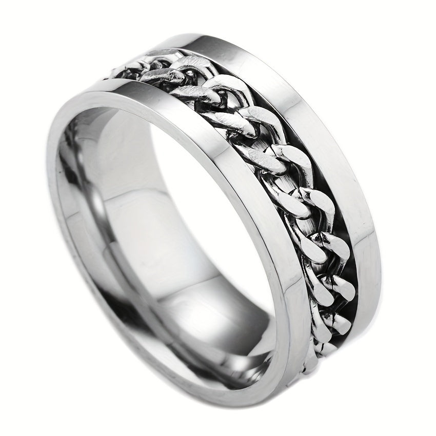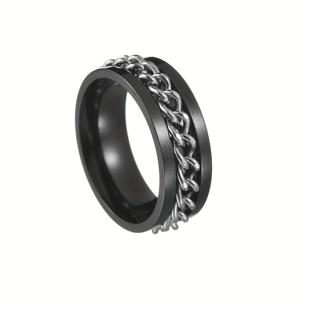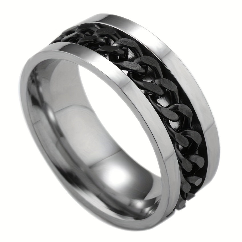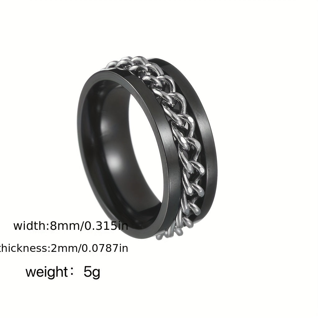 This men's ring is made of titanium steel and features a rotating chain design. It doubles as a beer bottle opener, combining style and function. Perfect for stress relief and casual occasions.