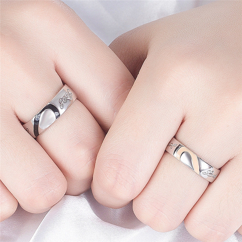 This romantic couple ring is made of durable stainless steel, perfect for weddings and engagements.