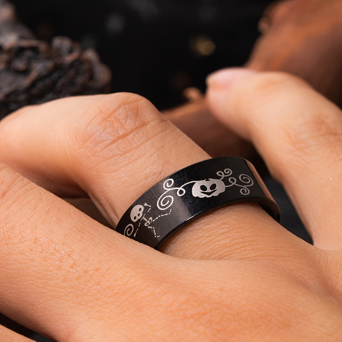 This men's stainless steel ring features a dark gothic design, making it a bold and stylish accessory.