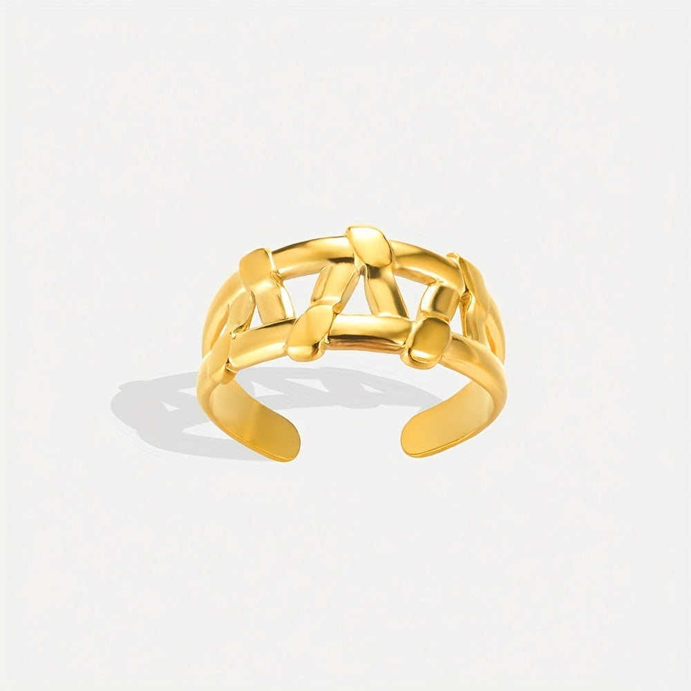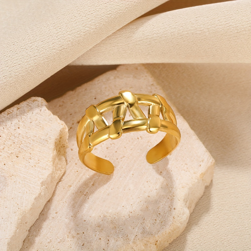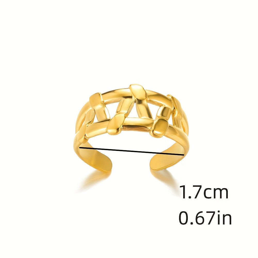 Add a touch of style to your look with this sleek stainless steel ring featuring a unique geometric opening design.