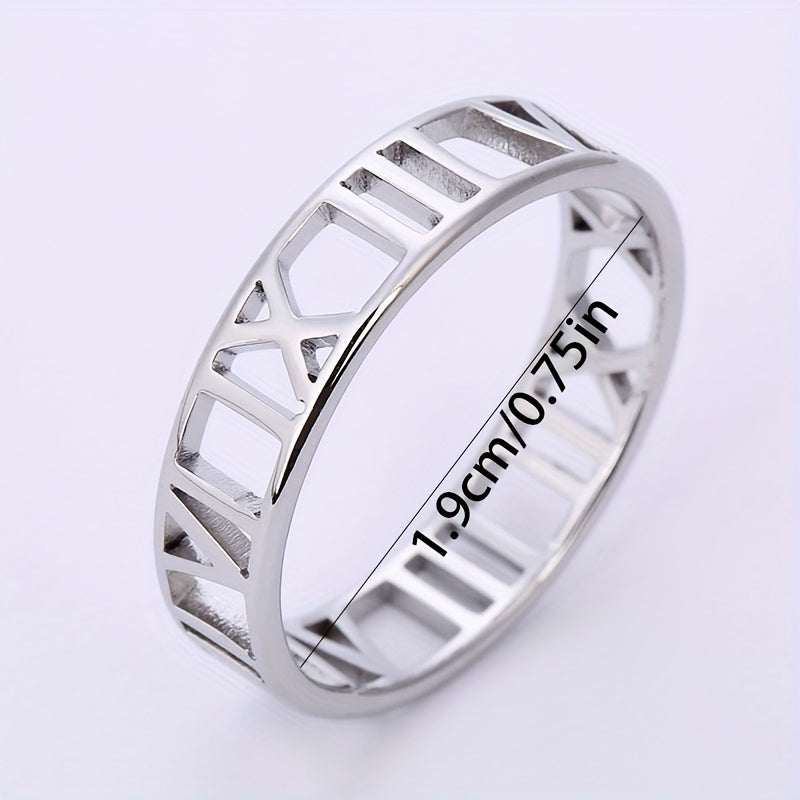 This men's ring features intricate hollow design with Roman numerals, made of stainless steel. Perfect for parties or as a gift.