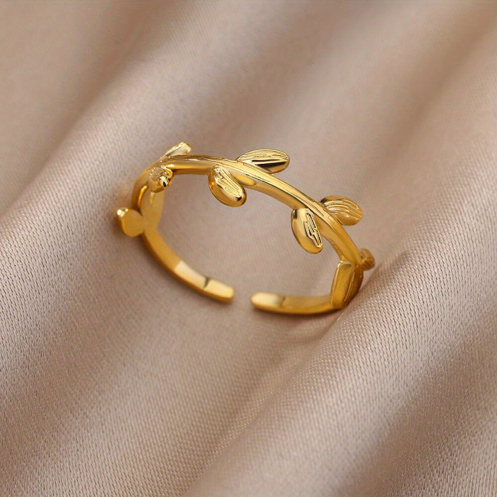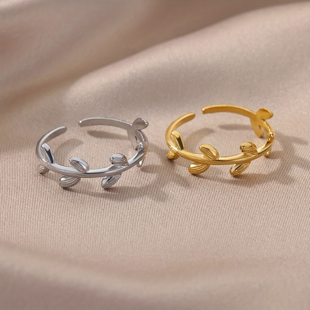 This unisex stainless steel plated ring features a stylish leaf design. Ideal for men, this open ring adds a touch of nature-inspired charm to any outfit.