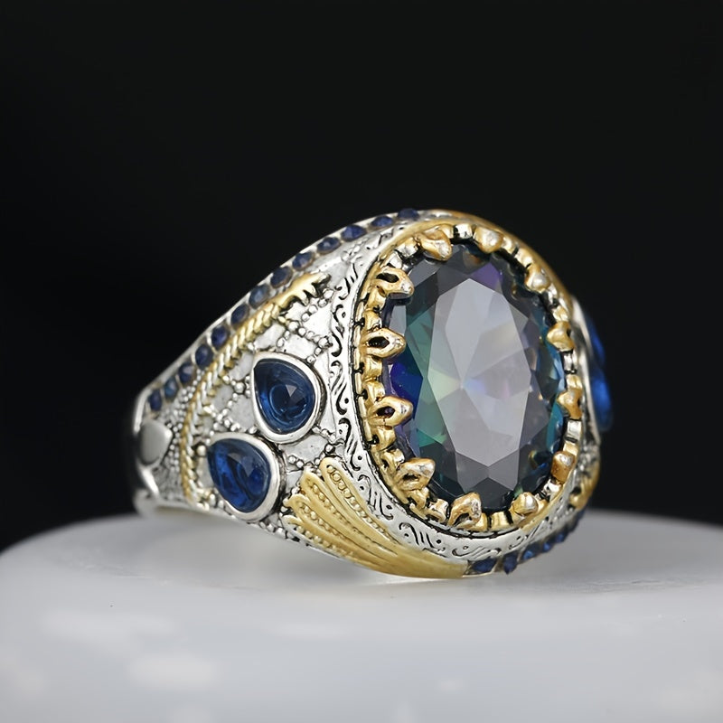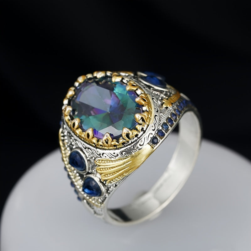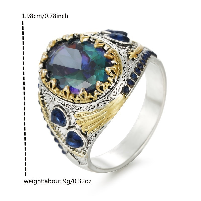 Men's Vintage Gem Ring Golden Plated Wide Ring