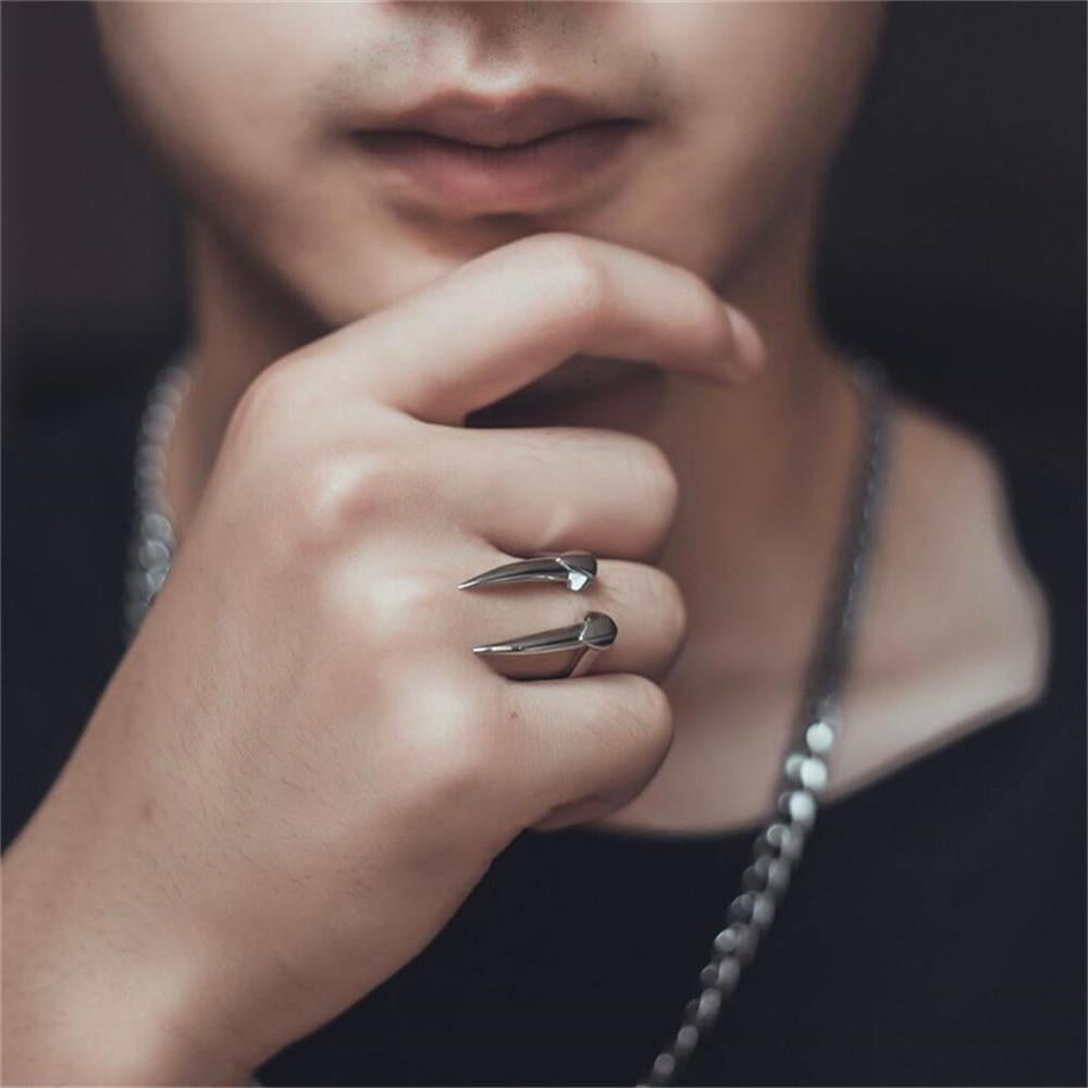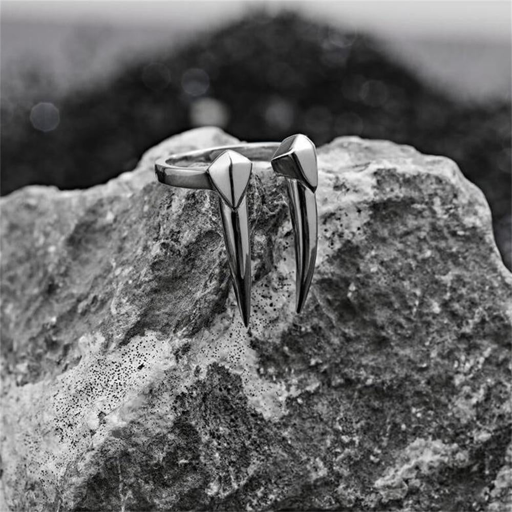 Add an edgy touch to your look with this vintage punk style snake fangs ring. Crafted with intricate details, this silver ring is perfect for men who appreciate unique accessories.