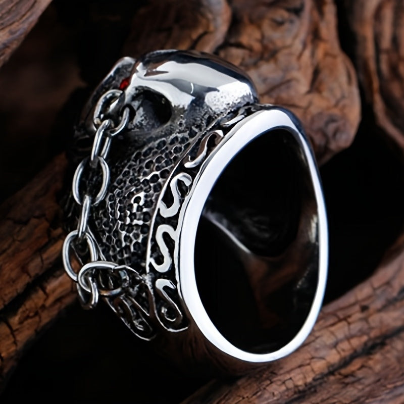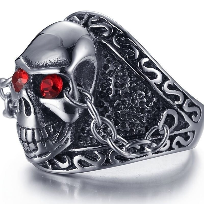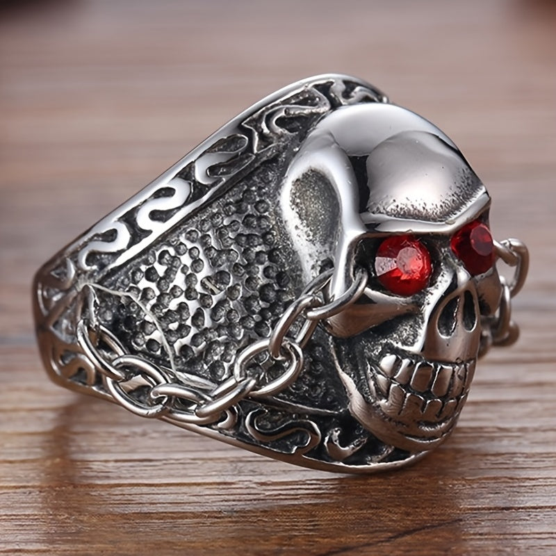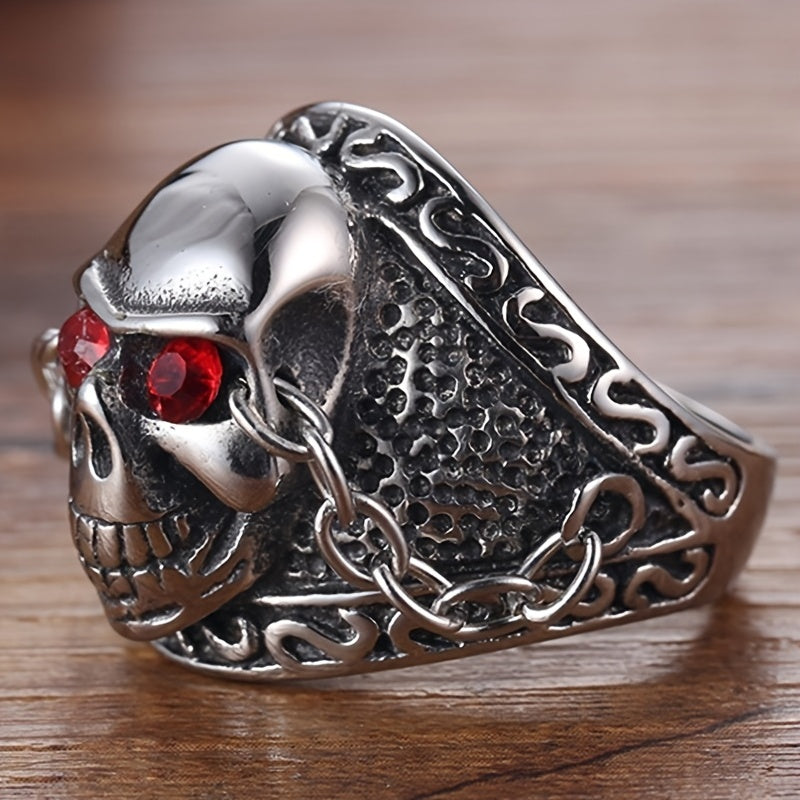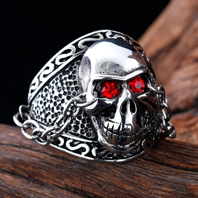 Embrace your inner rebel with this men's domineering ring featuring a vintage red eyed ghost head design. Perfect for adding a touch of punk to your style.
