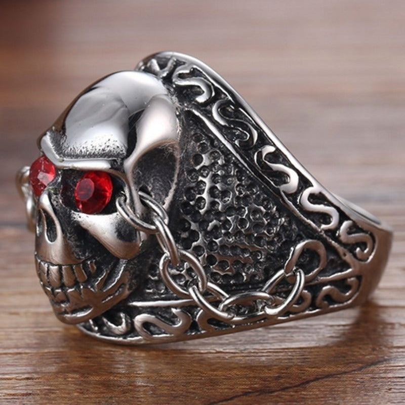 Men's Vintage Red Eyed Ghost Head Ring Punk Style