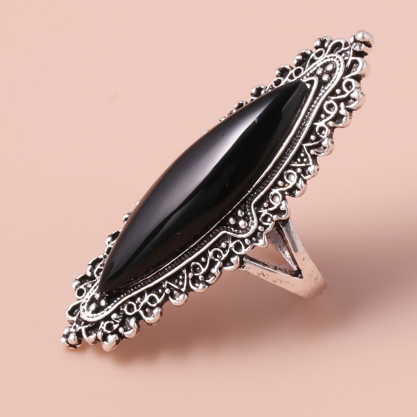 This vintage resin ring is a stylish addition to your retro fashion collection. The long design adds a touch of gothic charm to your look.