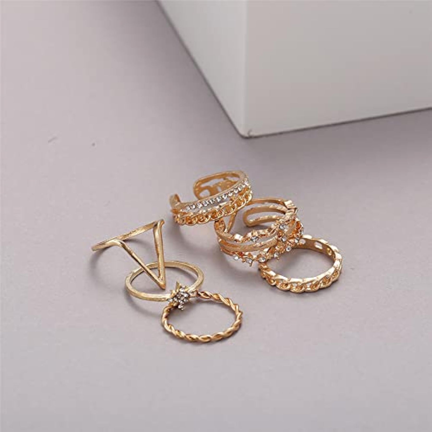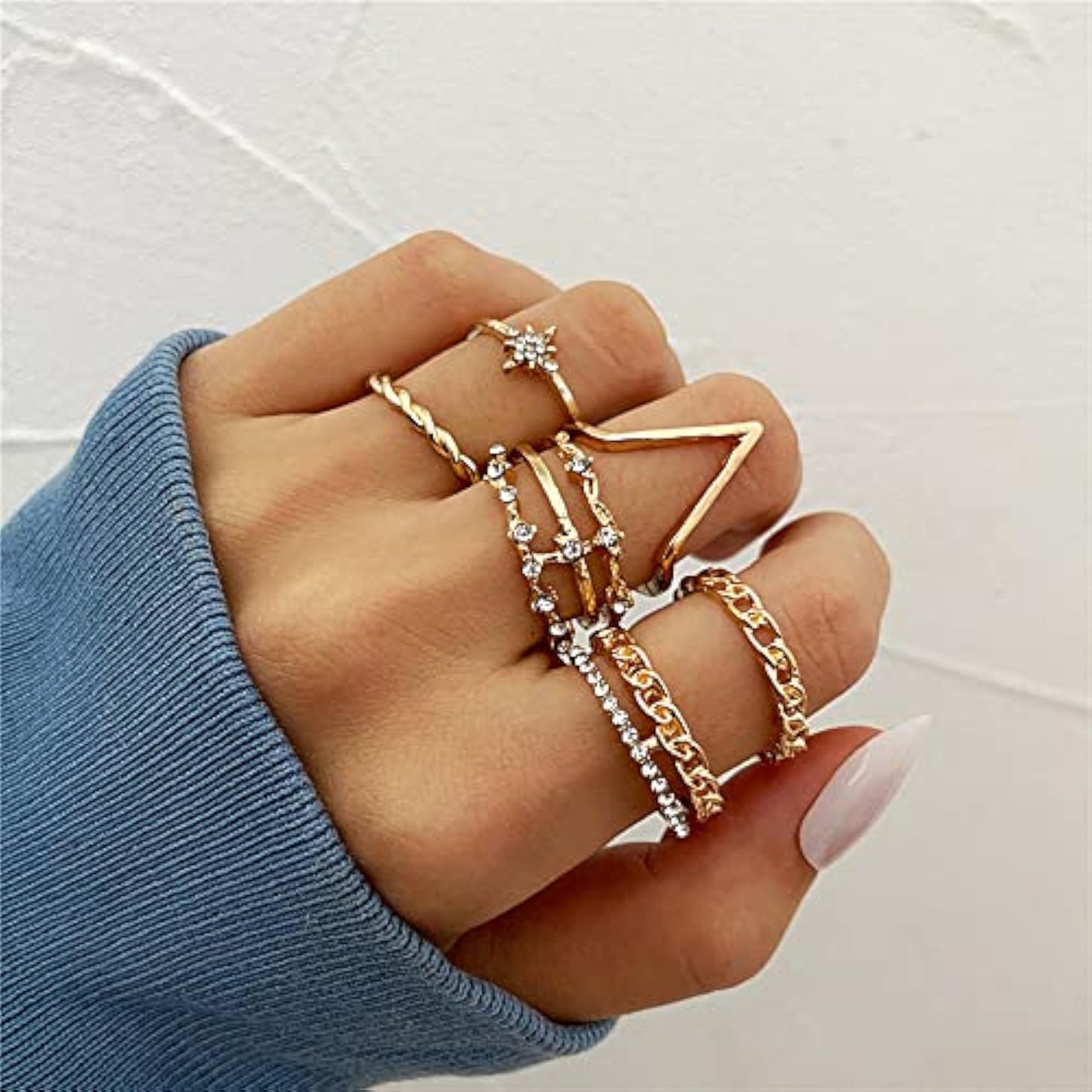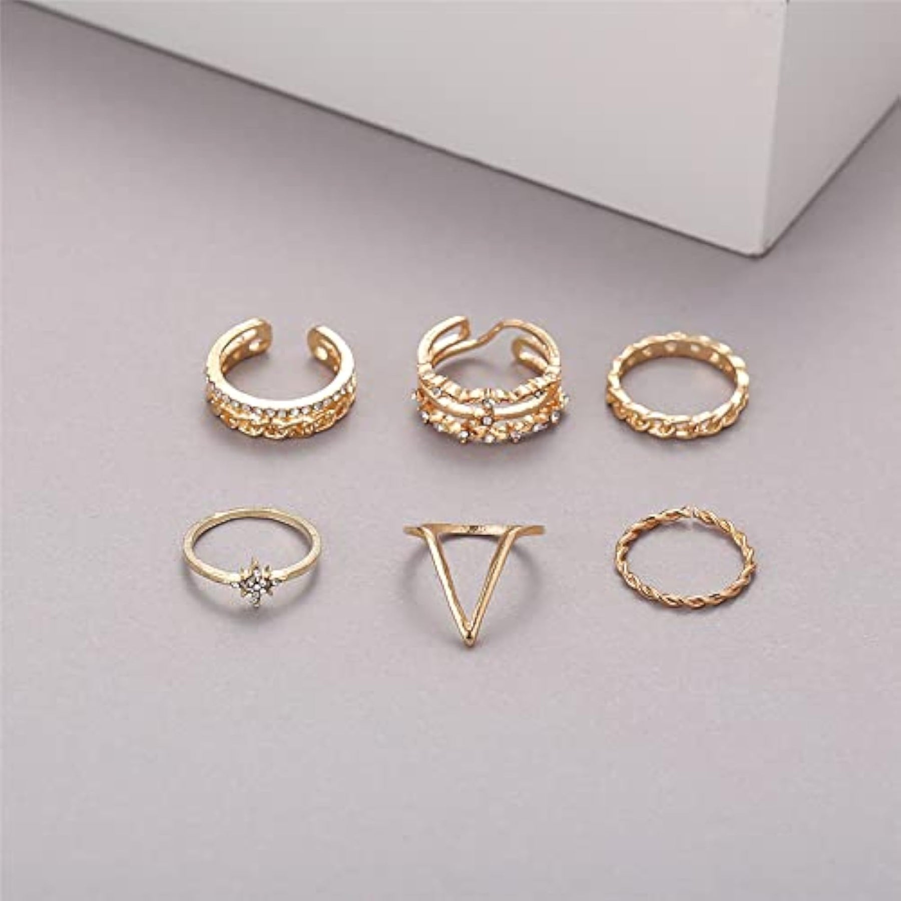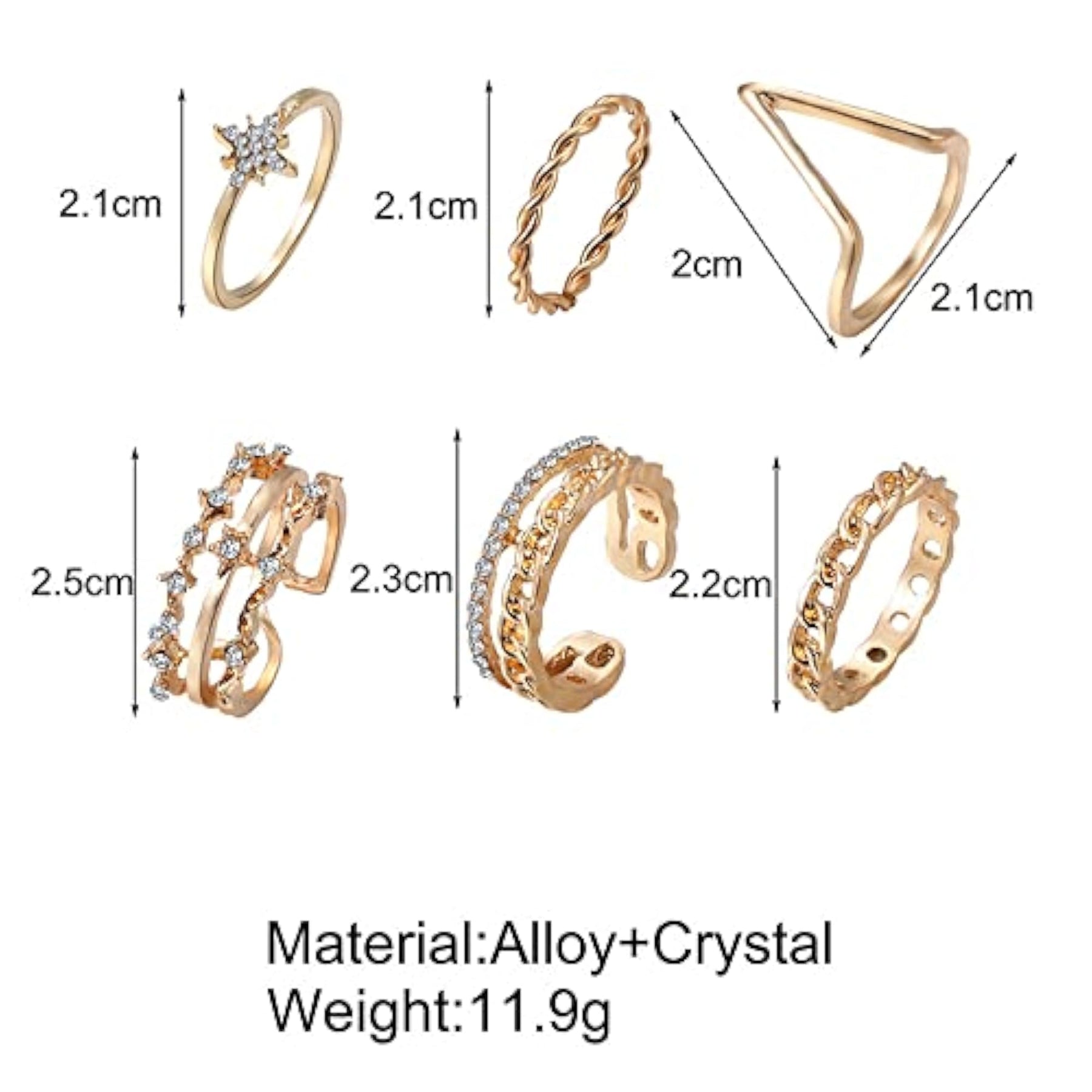 Elevate your style with this set of 6 trendy metal boho midi finger rings. Perfect for everyday wear or special occasions.