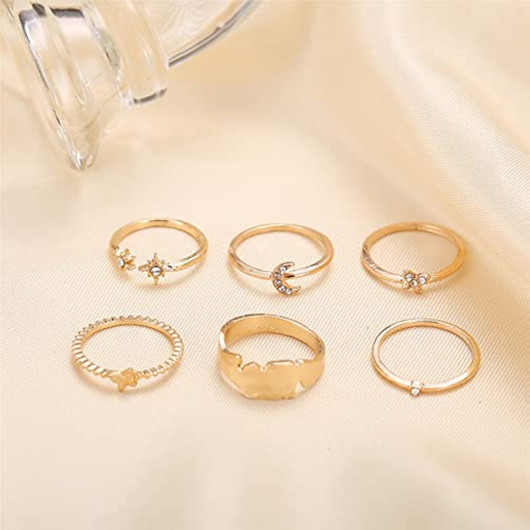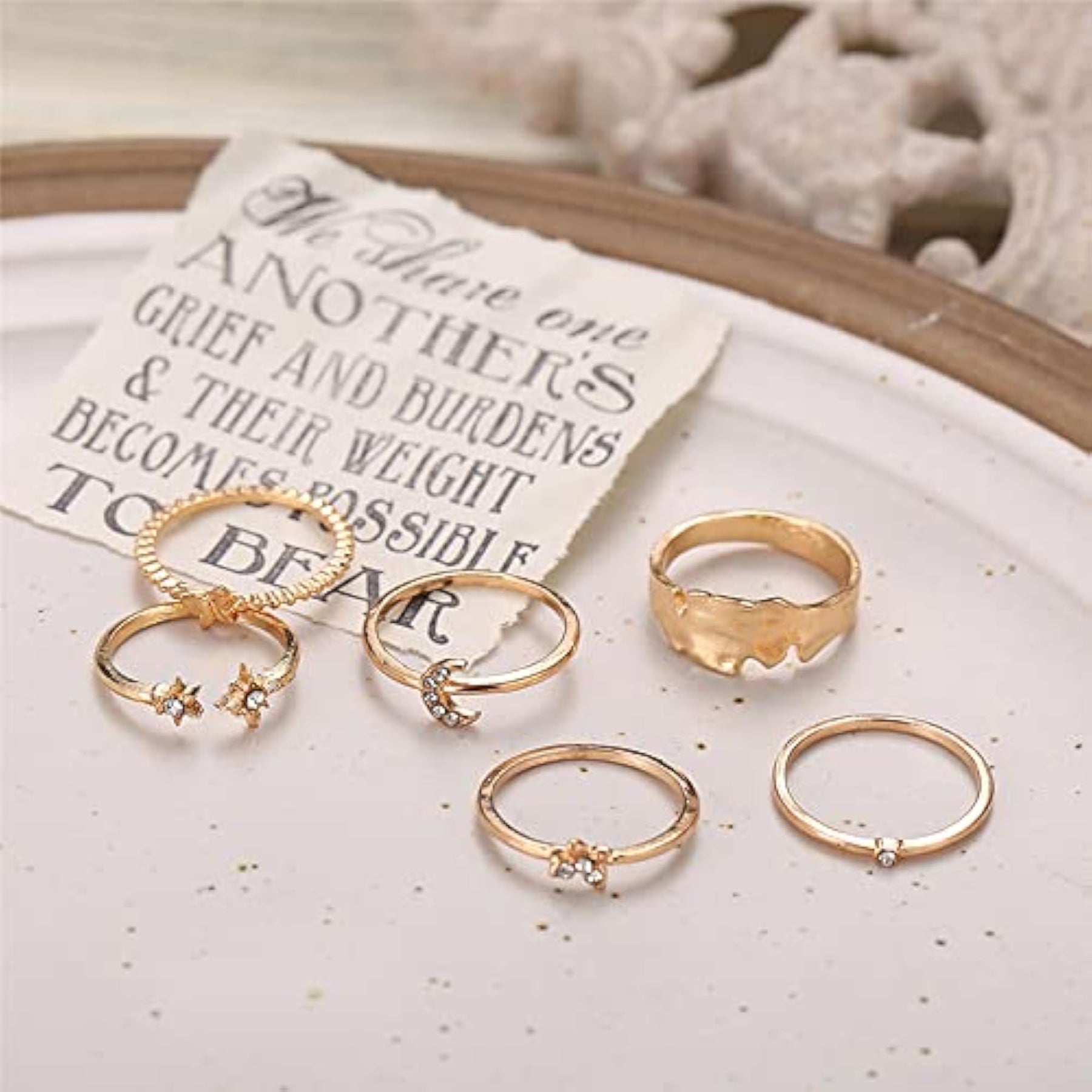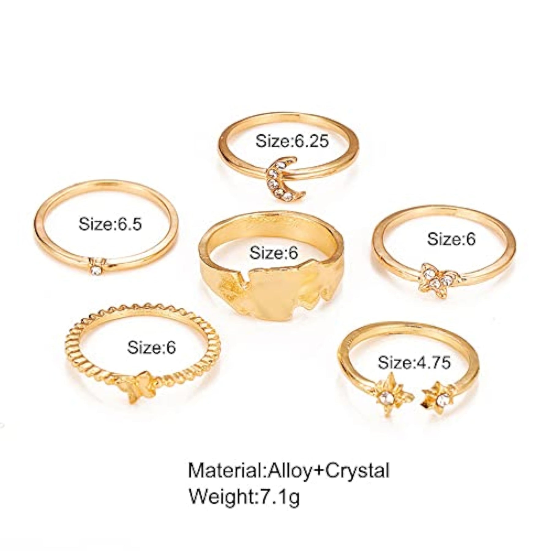 Enhance your style with this set of 6 stylish metal Boho midi finger rings. These rings are perfect for adding a touch of elegance and charm to your look.