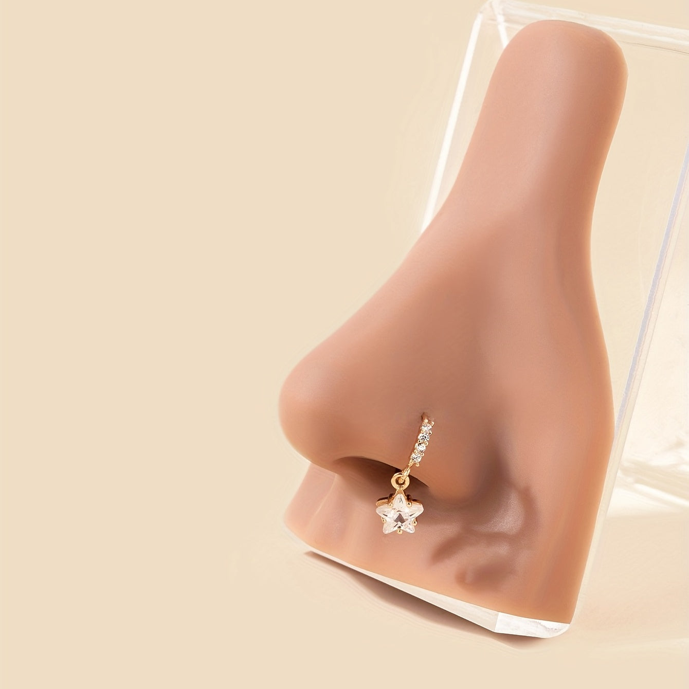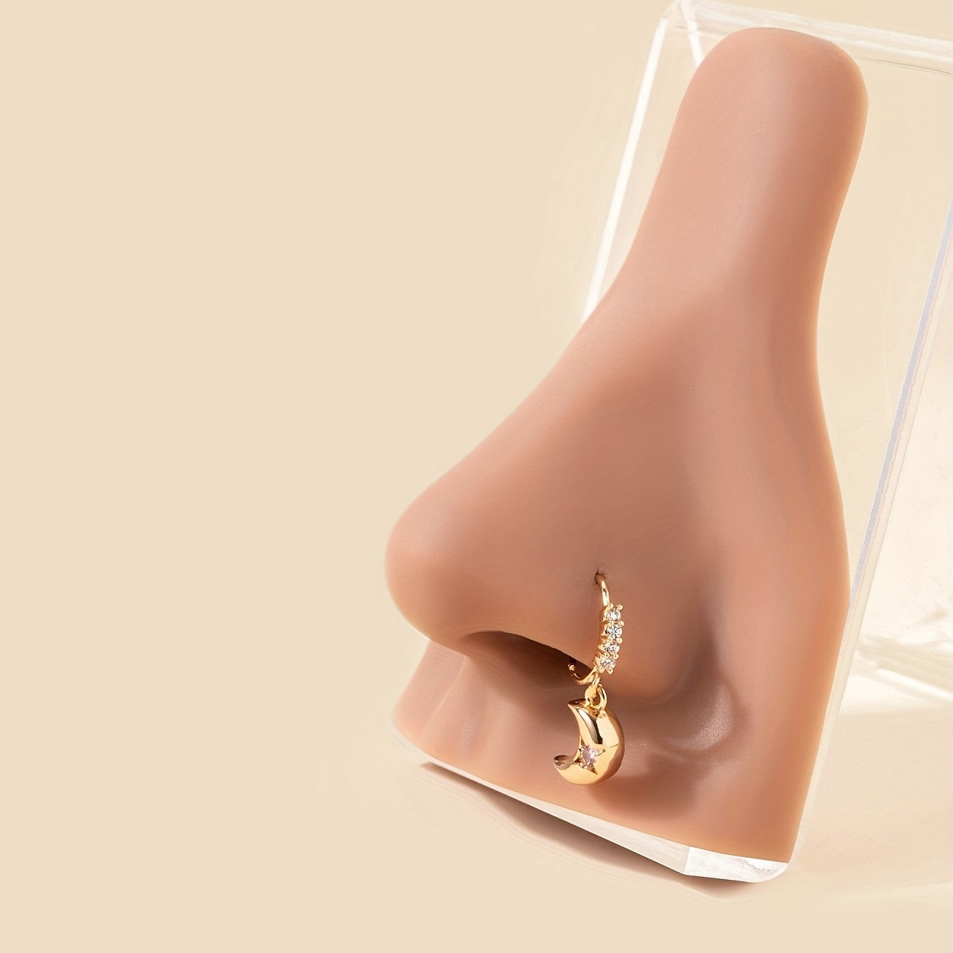 This elegant nose hoop ring features a moon and star shape pendant with sparkling zircon inlay. Perfect for adding a touch of celestial charm to your look.