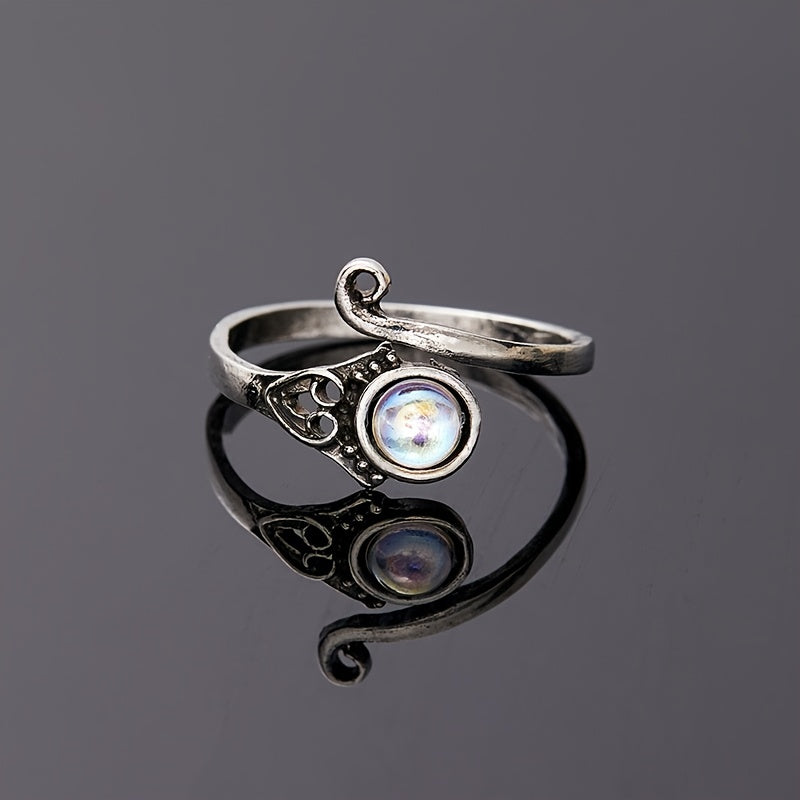 This stunning moonstone alloy open ring is a perfect accessory for boho women. It is inlaid with moonstone and makes a great gift for anniversaries, parties, and special occasions.