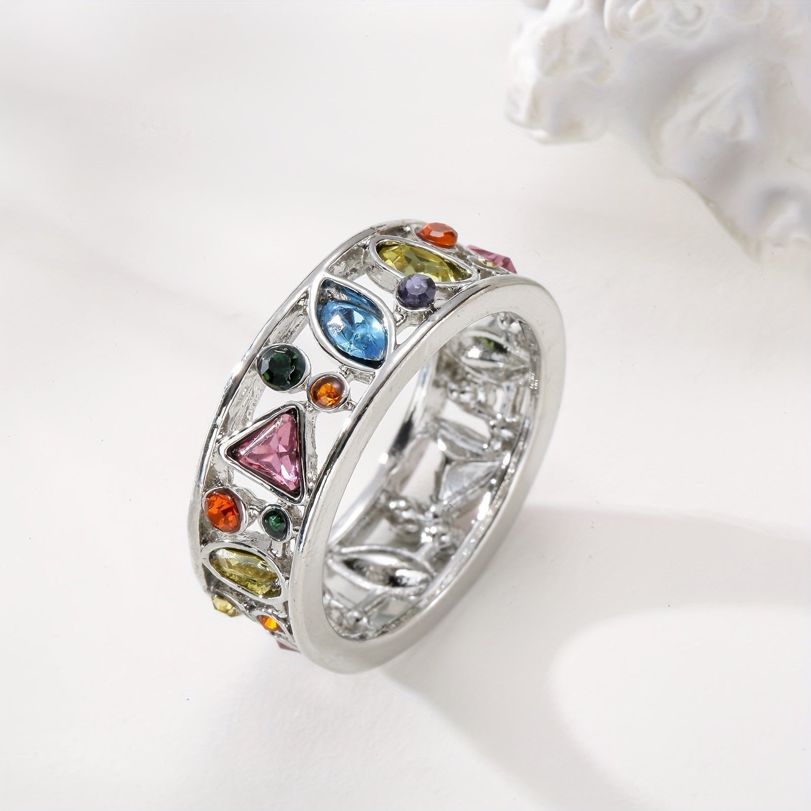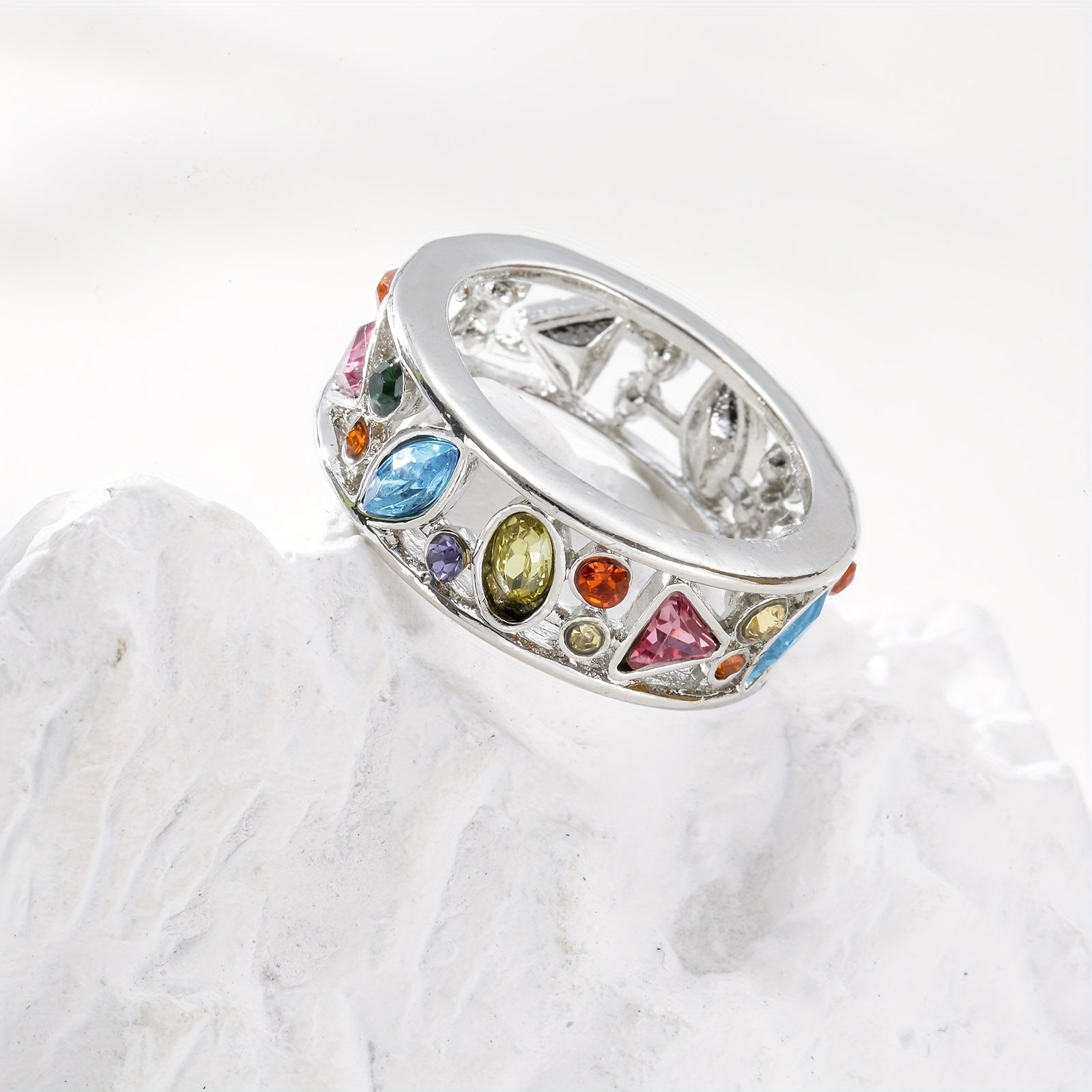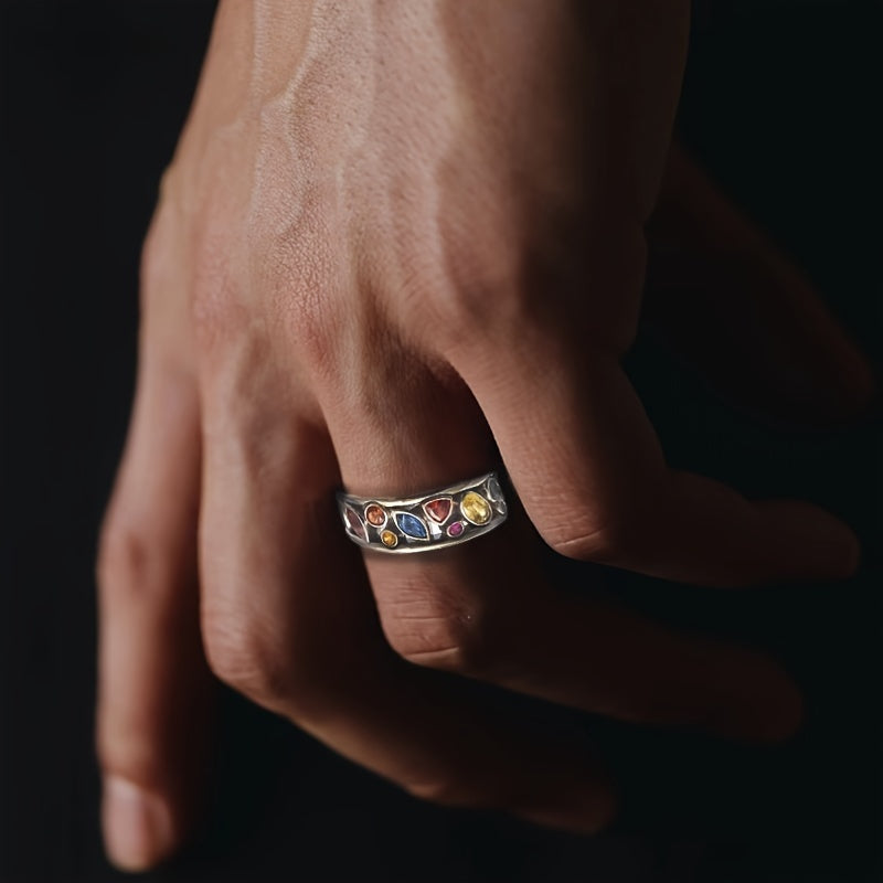 Add a touch of color to your look with this stylish ring featuring multicolor gemstones. Suitable for both men and women.