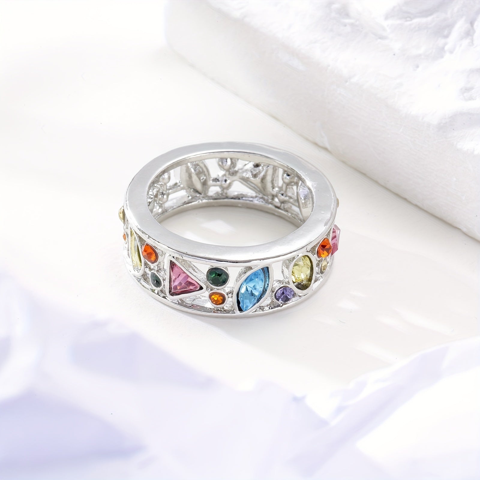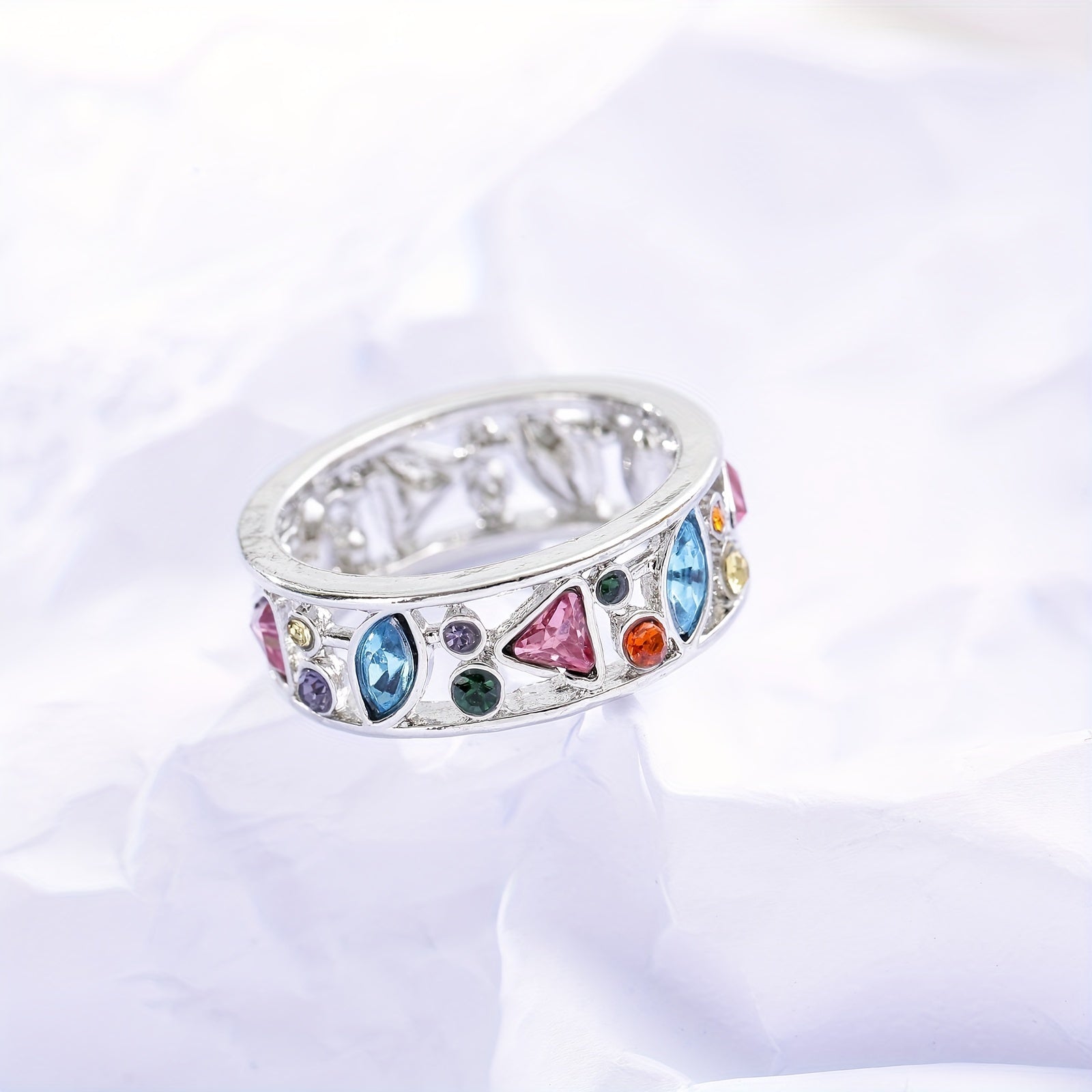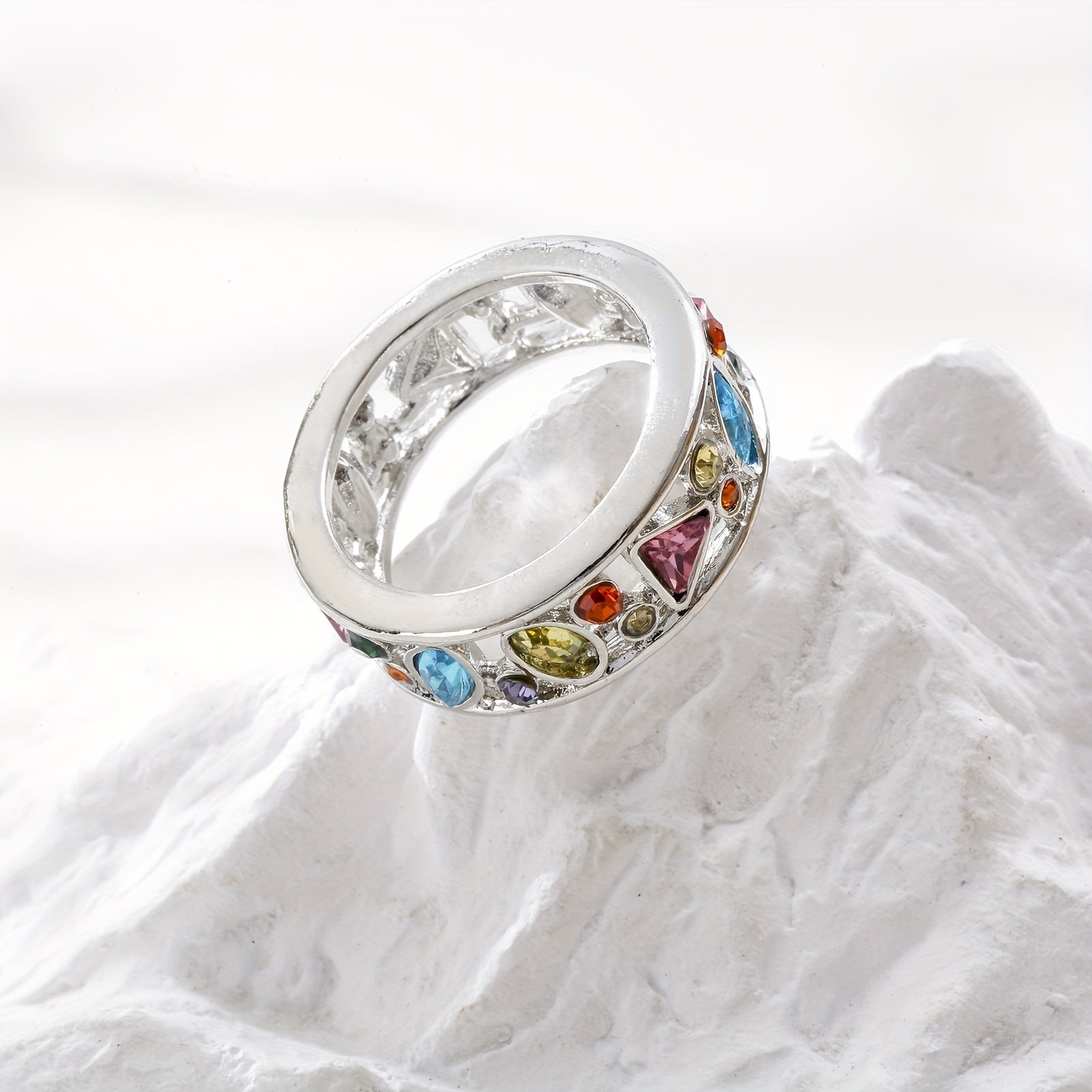Add a touch of color to your look with this stylish ring featuring multicolor gemstones. Suitable for both men and women.