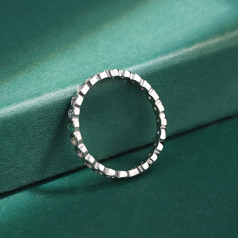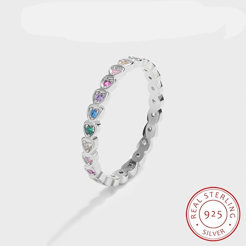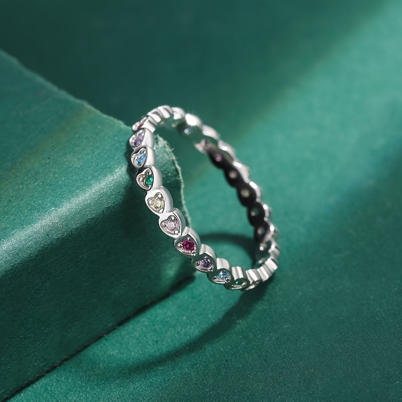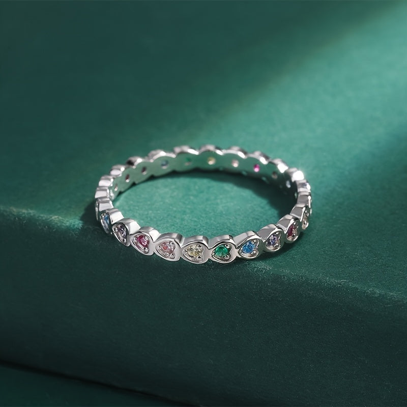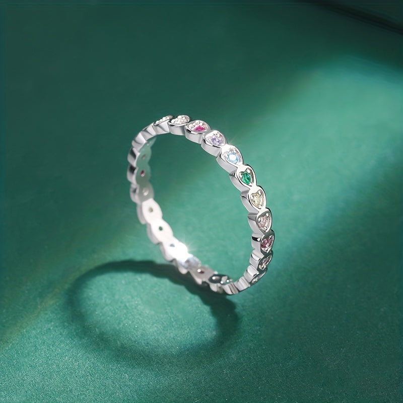 This stunning rainbow zircon set ring is a perfect accessory for women and girls. It features a colorful array of zircons that create a vibrant and eye-catching look.