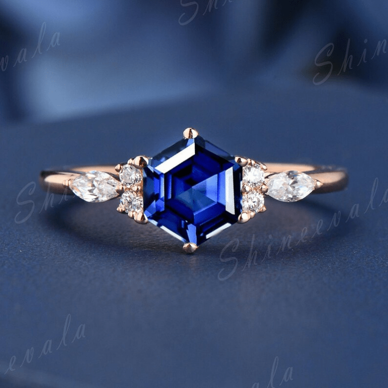 Stunning promise ring featuring inlaid ocean zircon, ideal for engagement or wedding. Perfect gift for her on anniversary or birthday.