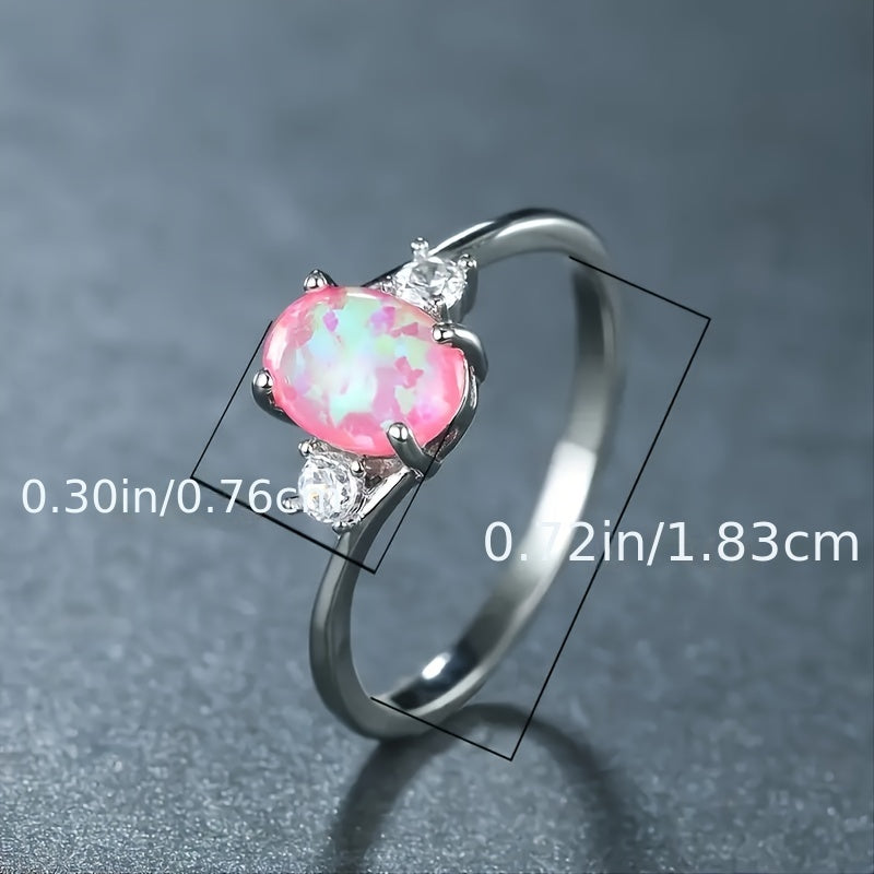 This stunning opal engagement ring features a classic design with a silver band and a beautiful oval opal crystal. Perfect for weddings and special occasions.