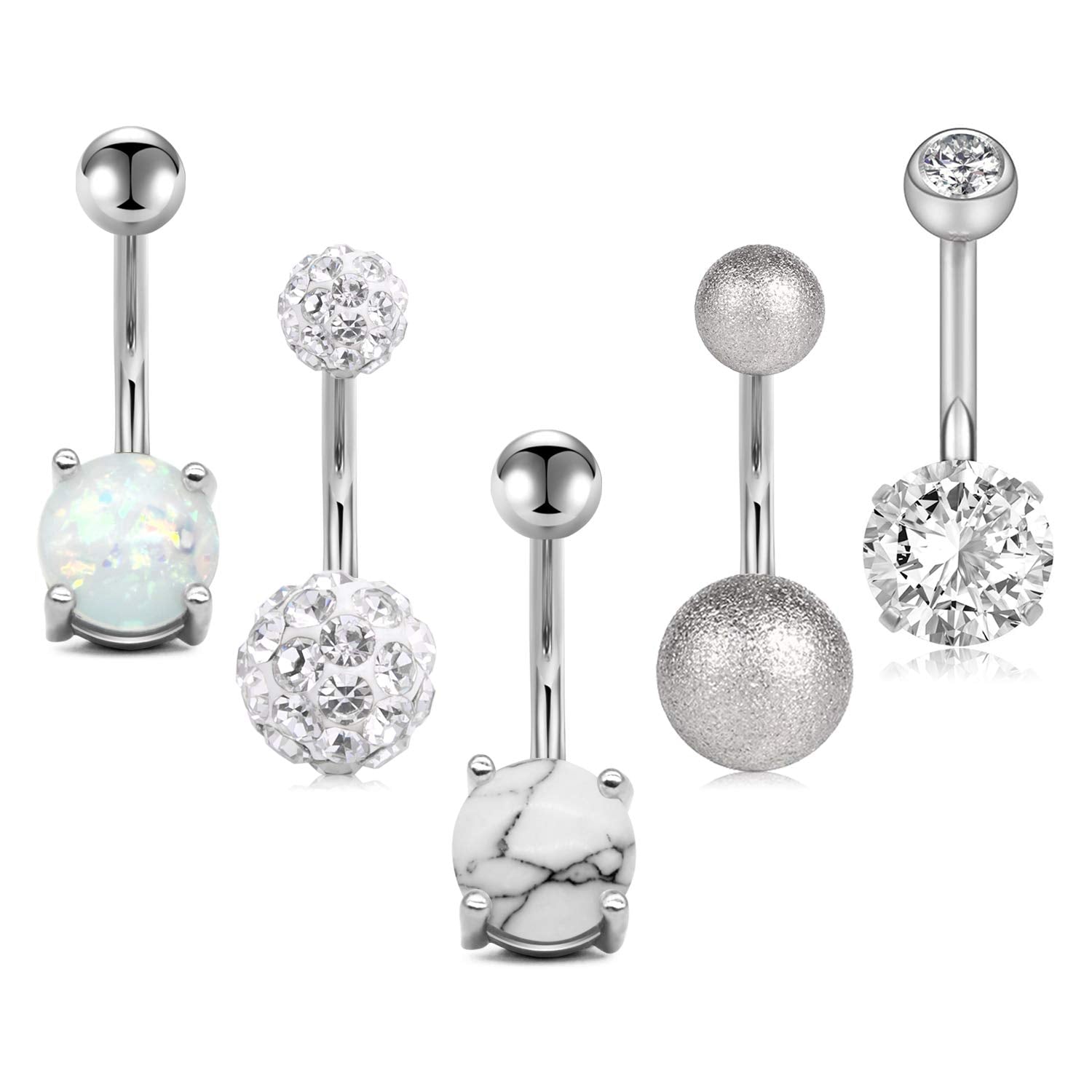 Accessorize your belly with these opal navel rings made of durable stainless steel. Perfect for women and girls who love belly piercing jewelry.