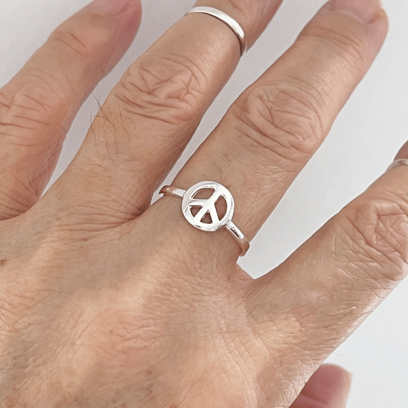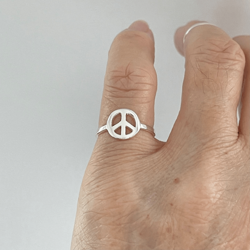 This stylish peace sign ring is silver plated and is the perfect accessory to match your daily outfits. It also makes a great gift for those who are passionate about peace and unity.