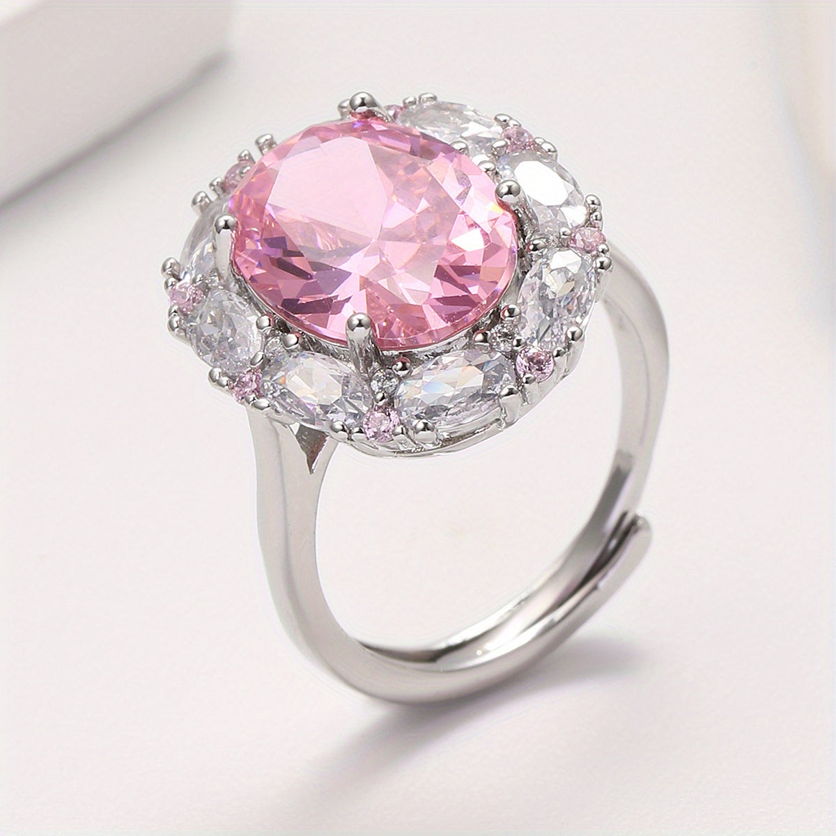 This elegant ring features a pink zircon stone set in silver plating, perfect for adding a touch of sparkle to any outfit. It makes a sweet birthday or holiday gift for your girl.
