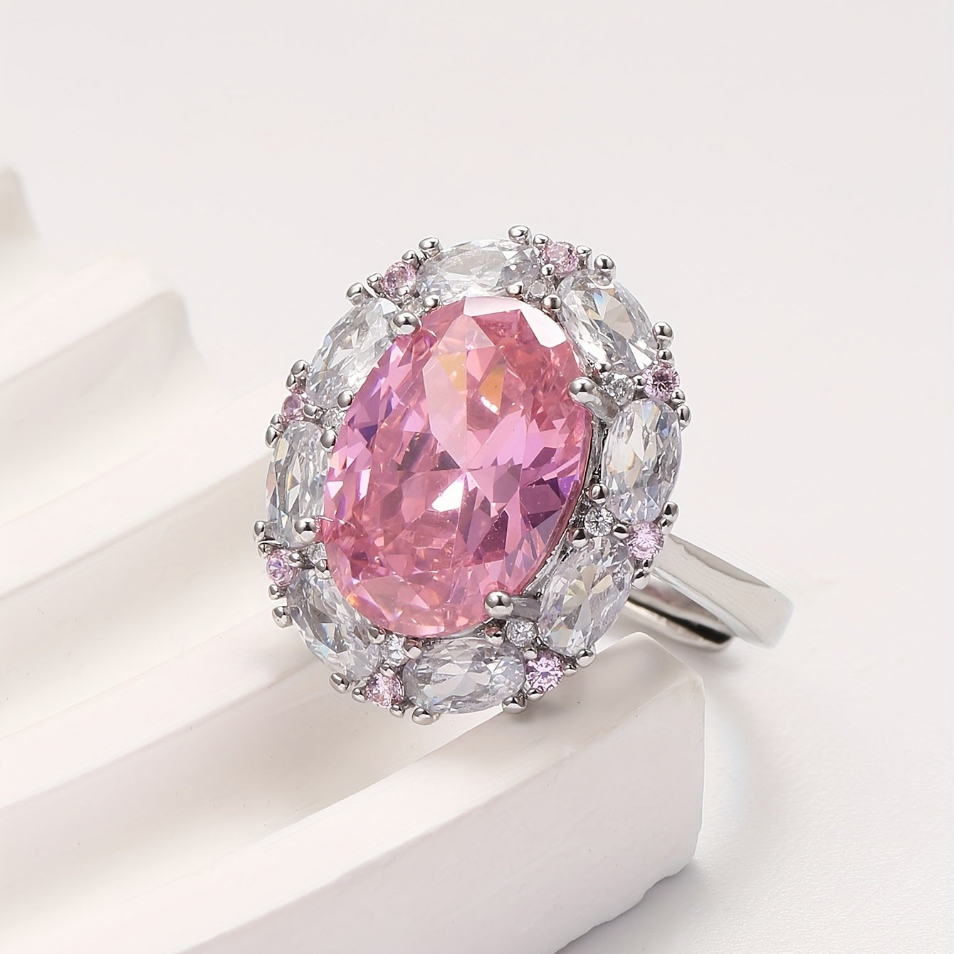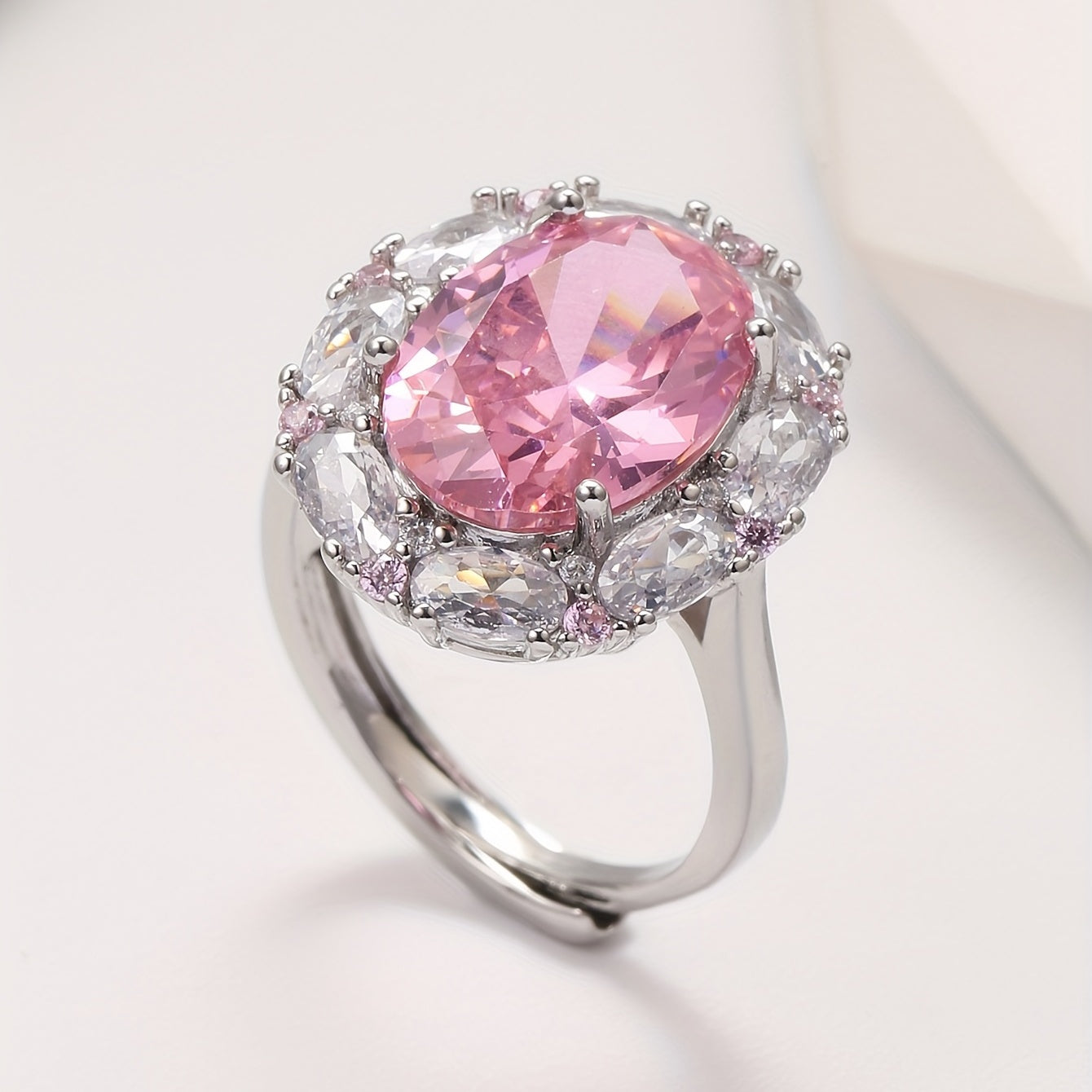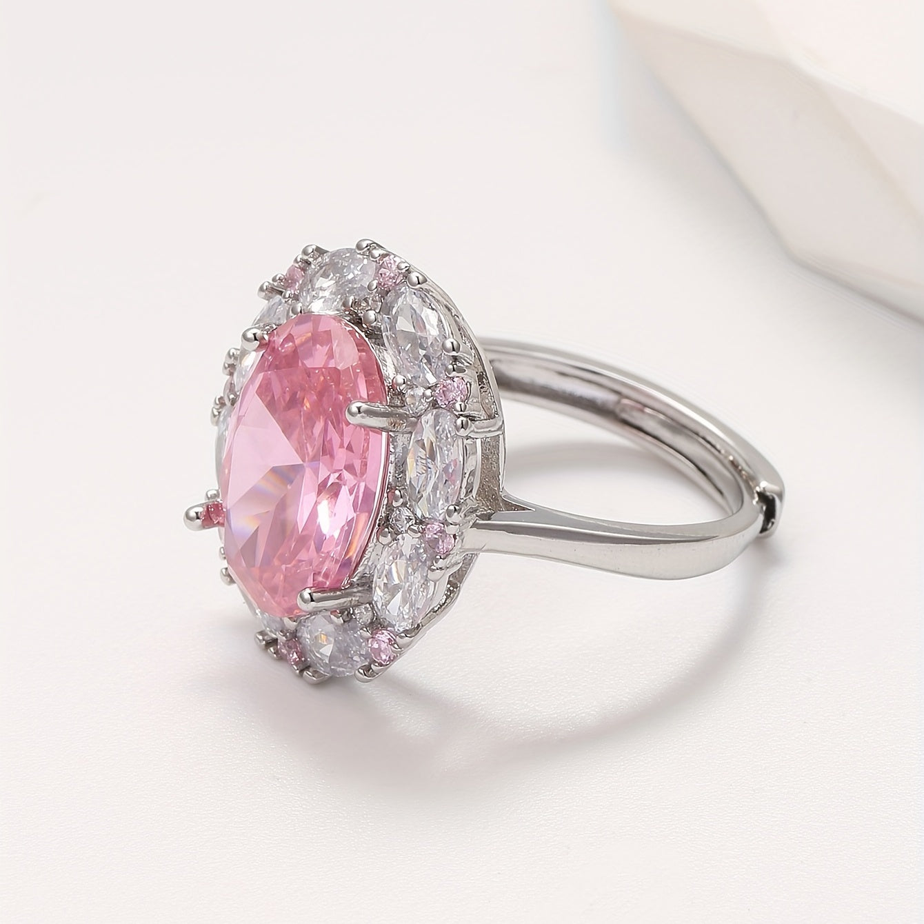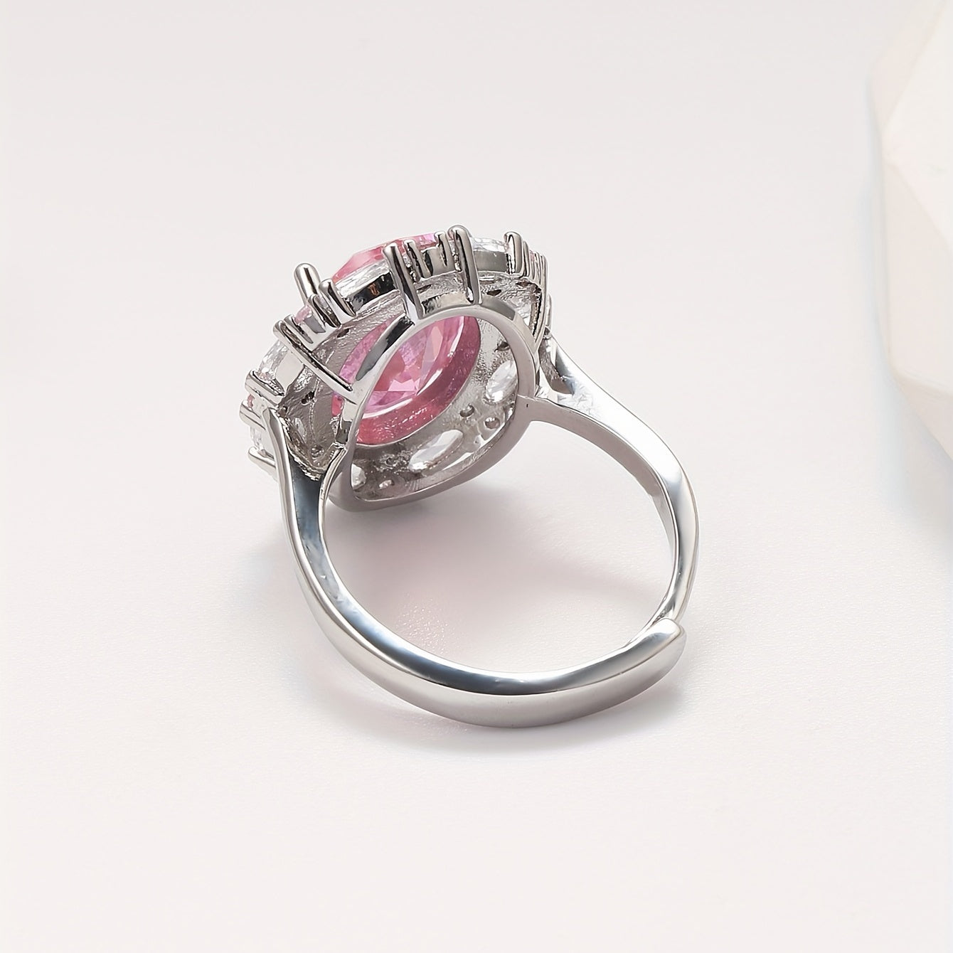 Pink Zircon Silver Plated Ring for Evening Party Decor