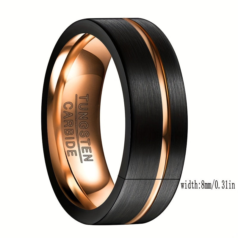 This stylish men's tungsten ring features a plated rose design with an 8mm width. It is a durable and fashionable accessory for any occasion.