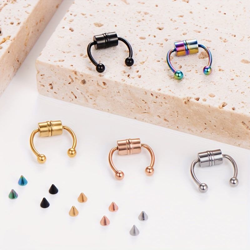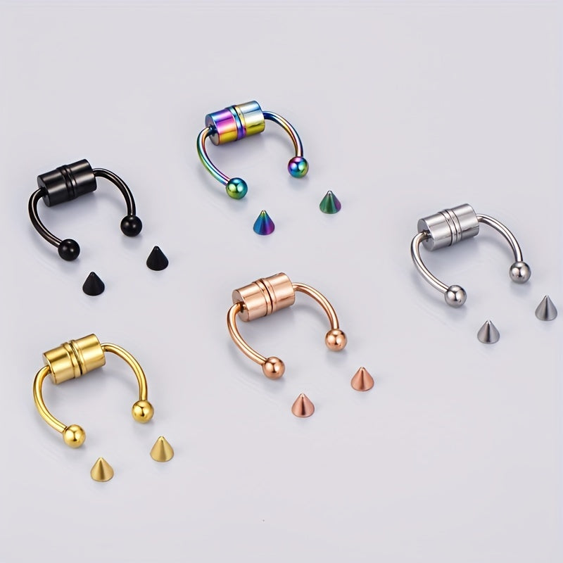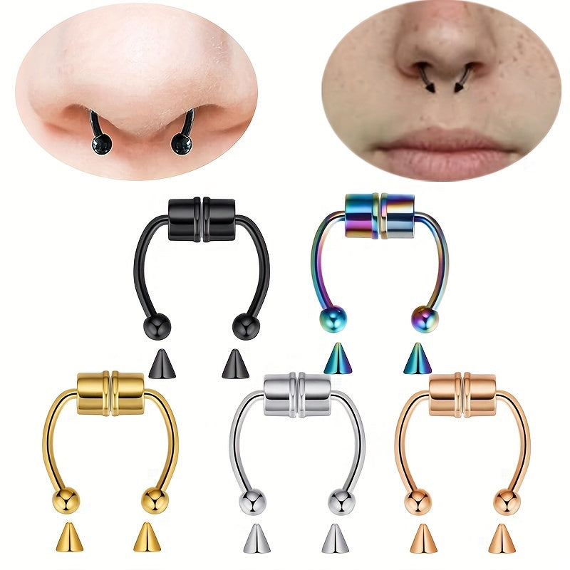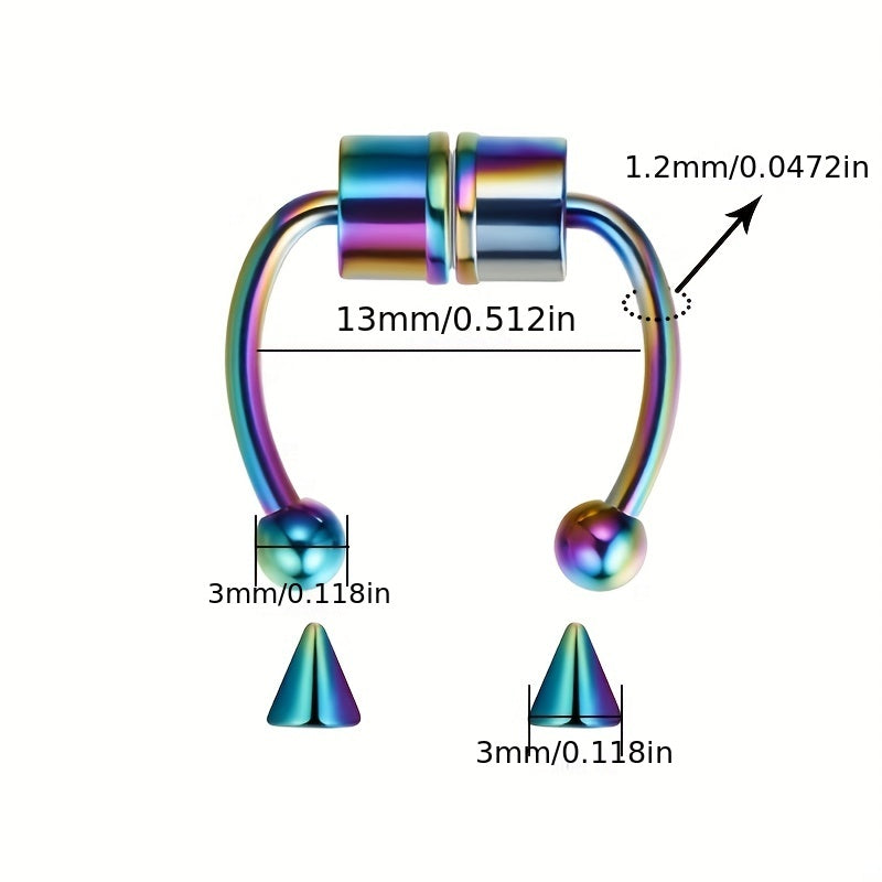 This magnetic septum ring is perfect for those who want to achieve a punk look. Made from stainless steel, it's easy to wear and gives the appearance of a nasal septum ring without the need for a piercing.