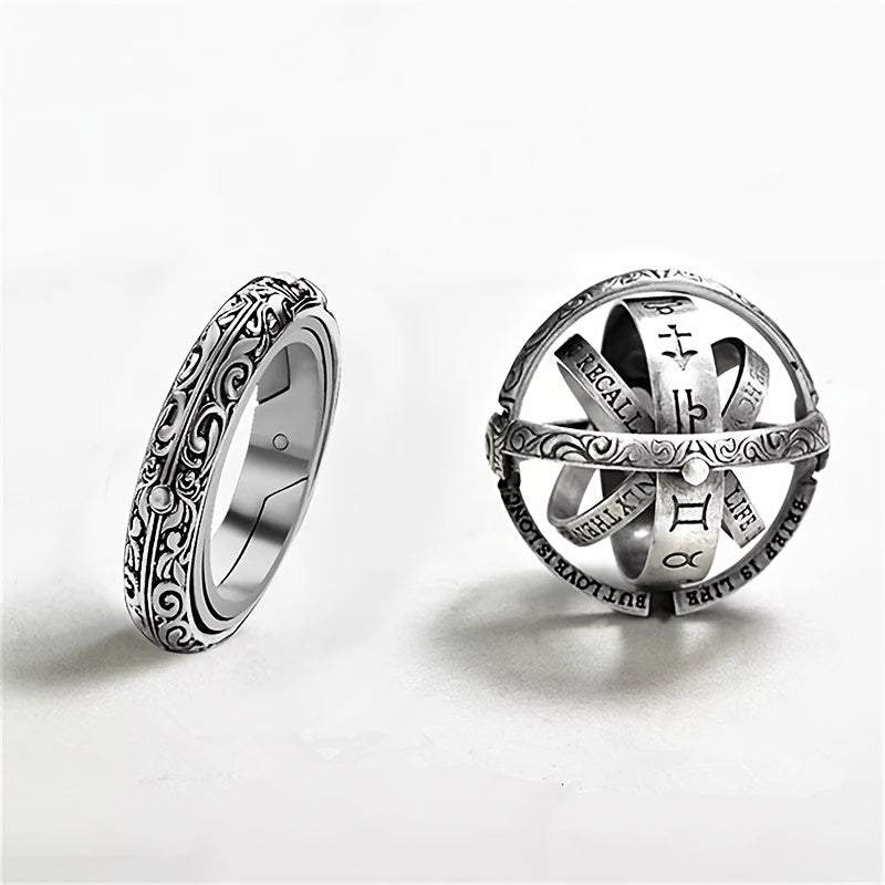 Unique ball-shaped ring that transforms into astronomical design. This rotating ring is a thoughtful gift for anyone.