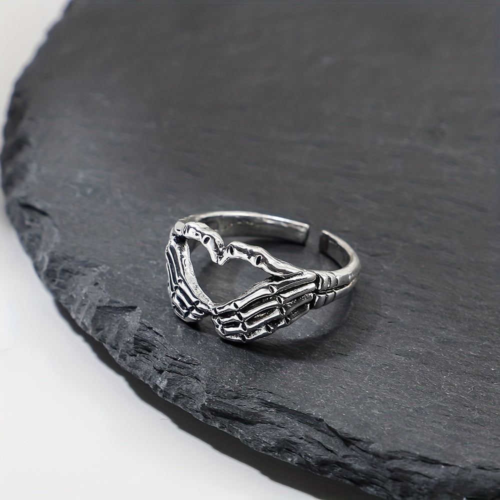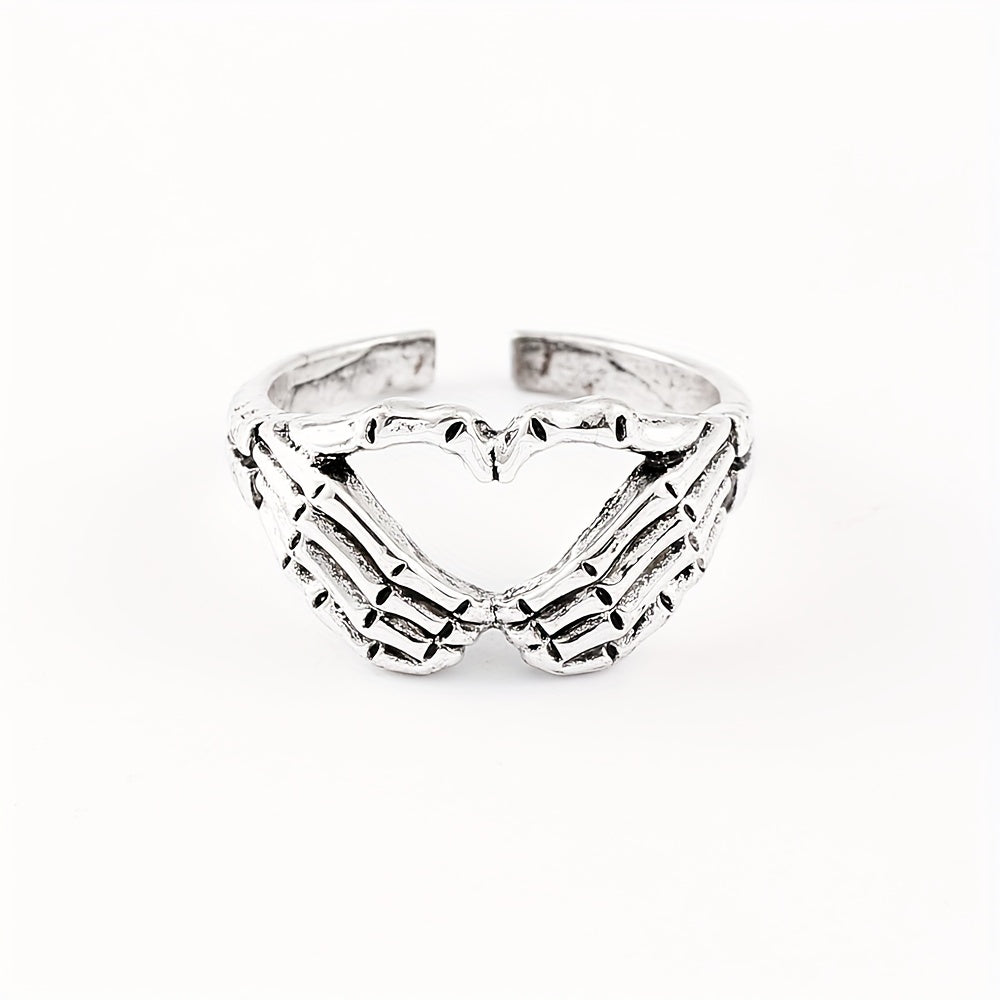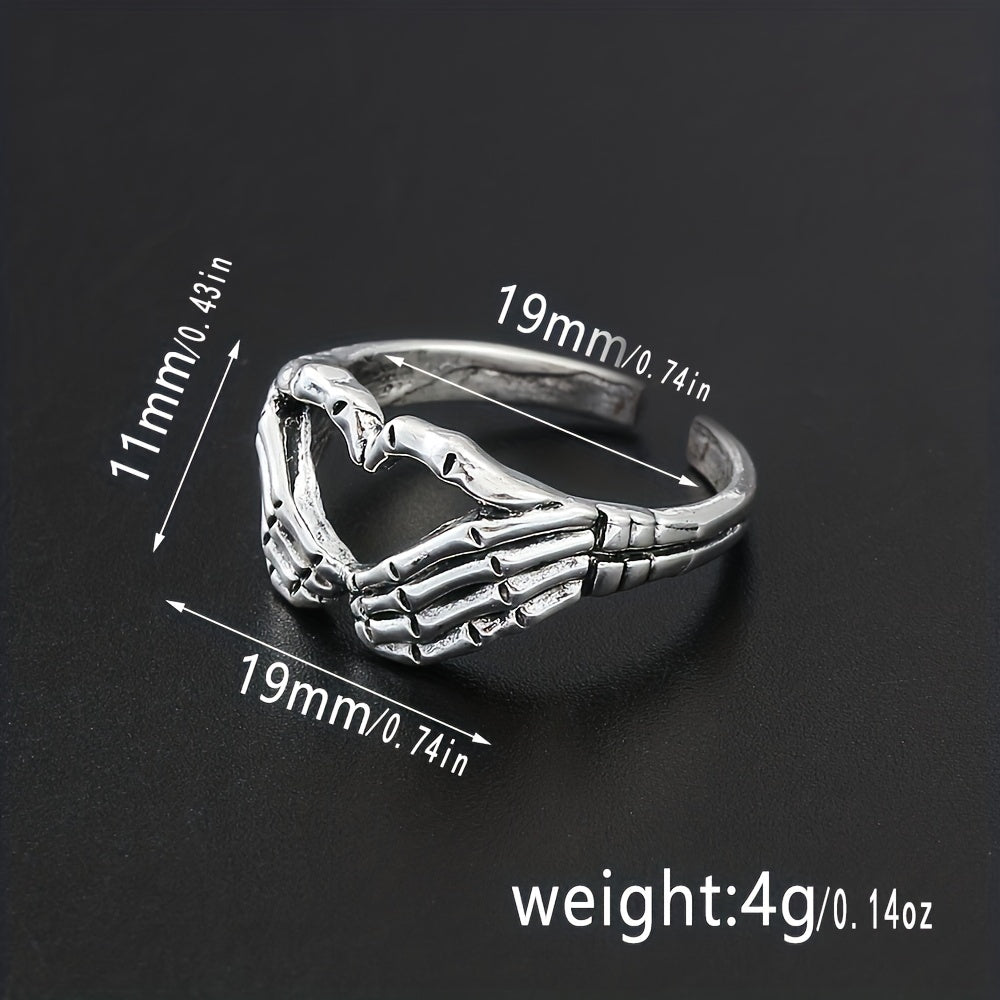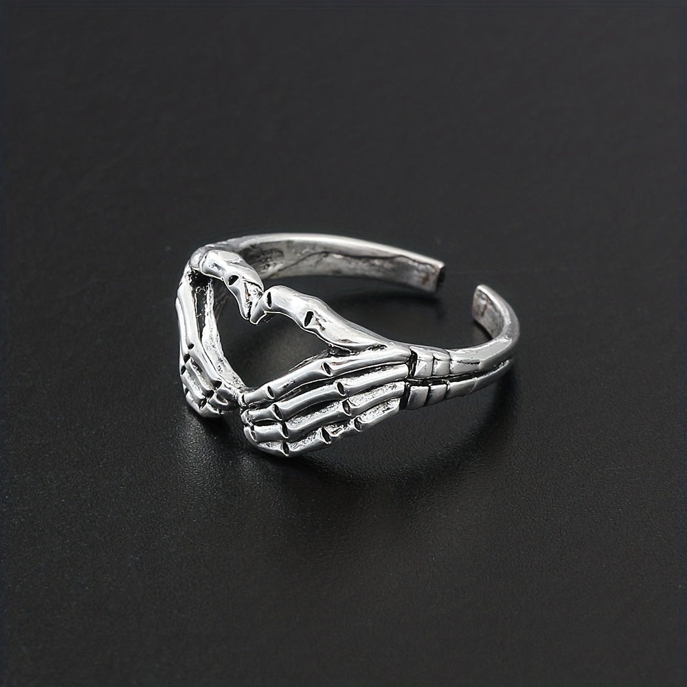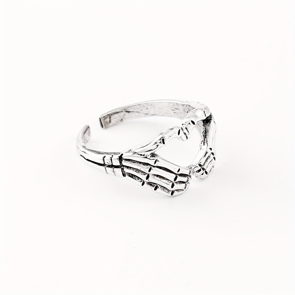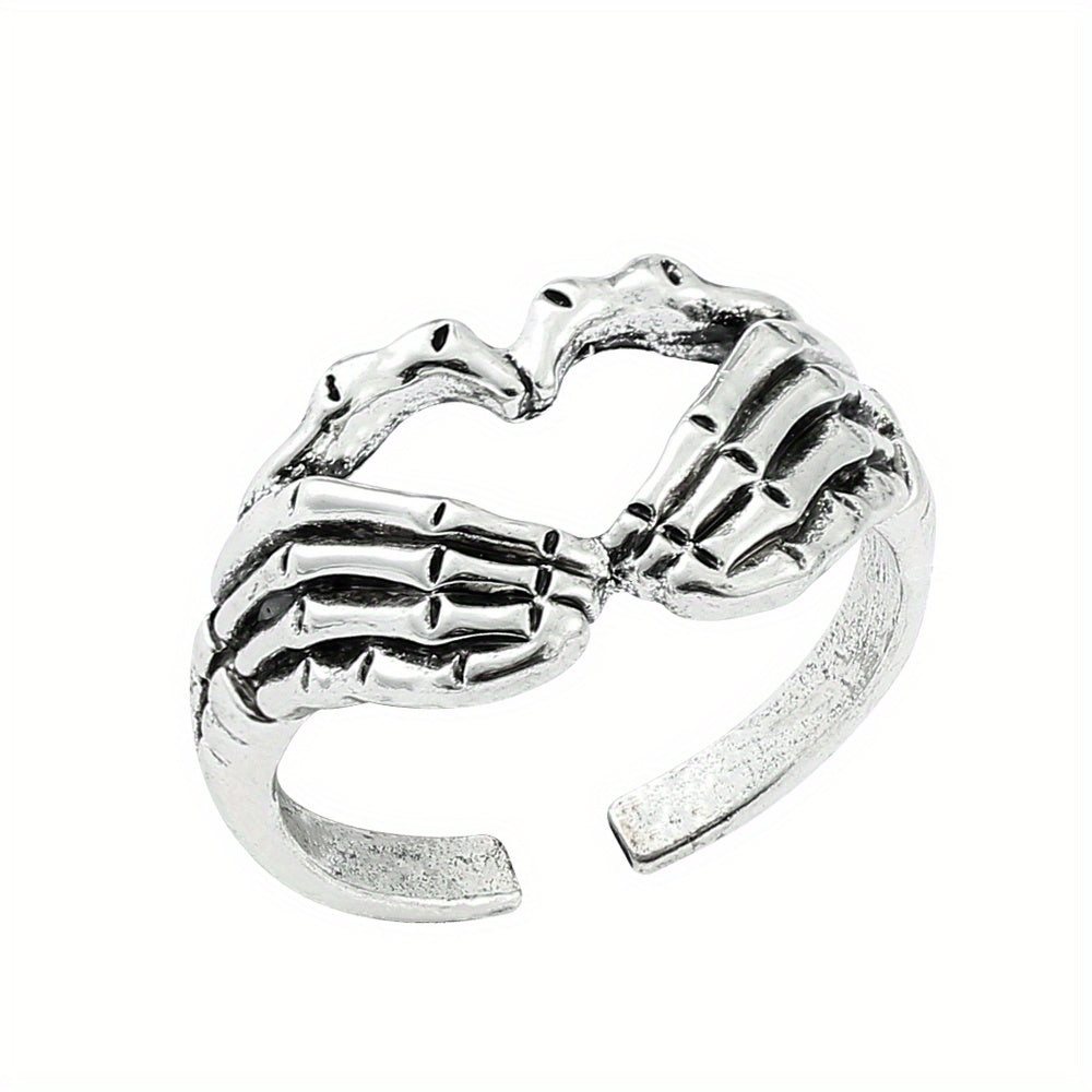 Retro Funky Silver Skull Hand Shaped Ring Vintage Zinc Alloy Jewelry