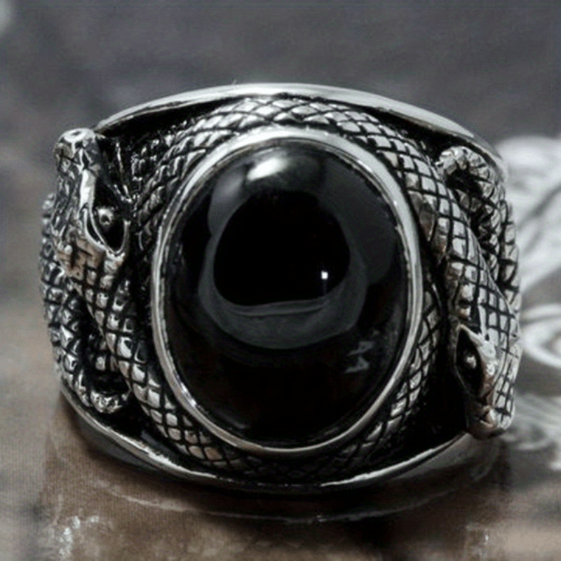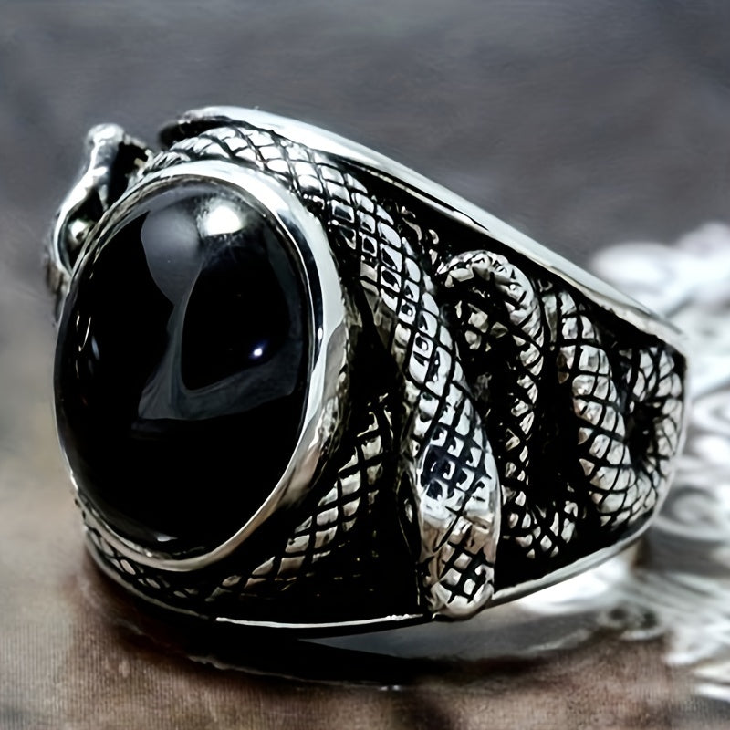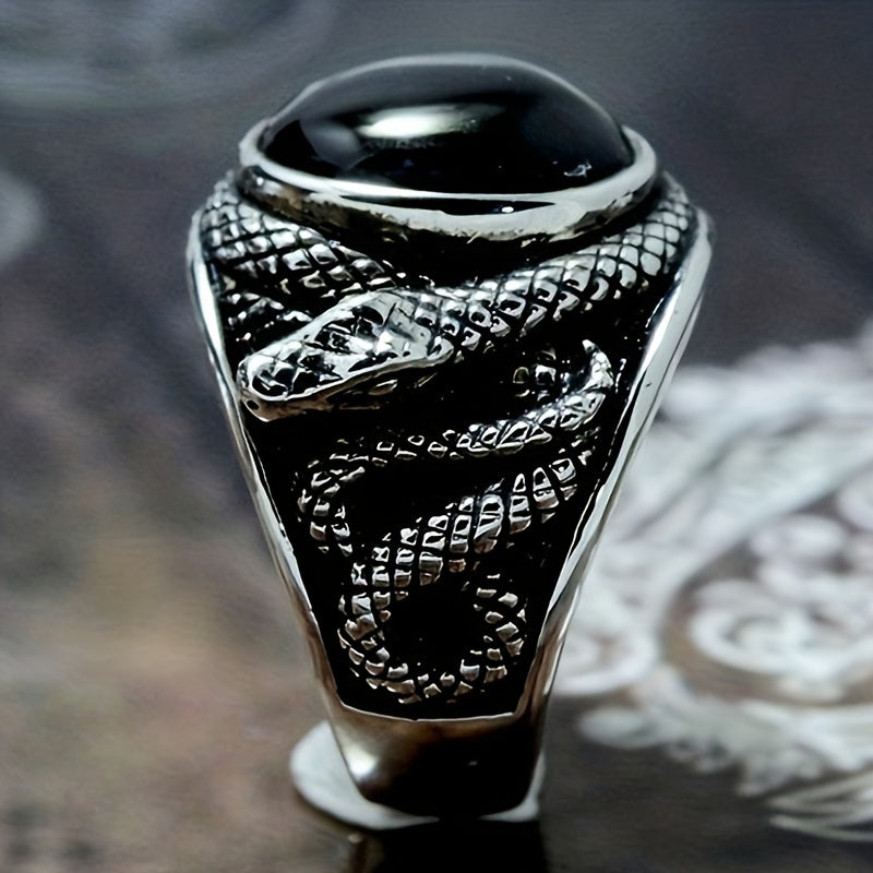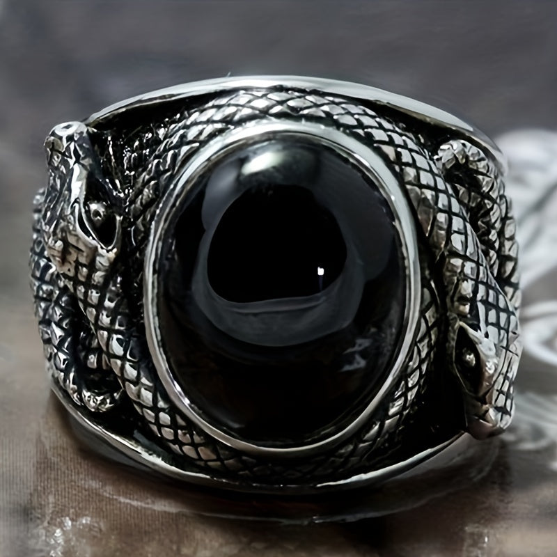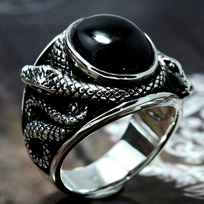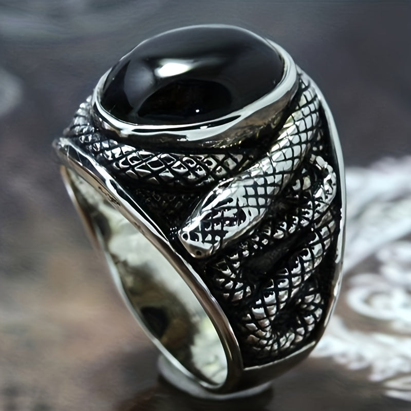 Retro Ring With Rhinestones & Snake For Men's Party