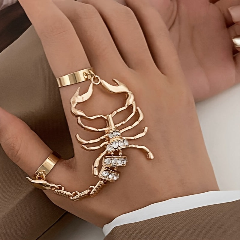 Retro Scorpion Rhinestone Statement Ring Punk Style Open Ring