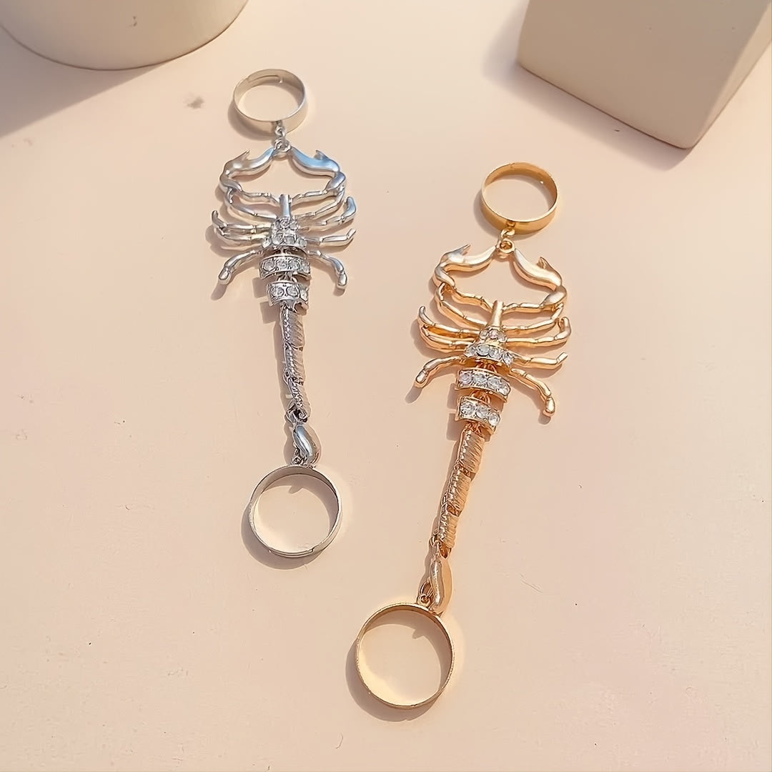 Unique punk style ring featuring a scorpion design with rhinestones. Great statement piece for men who love retro hip hop fashion.