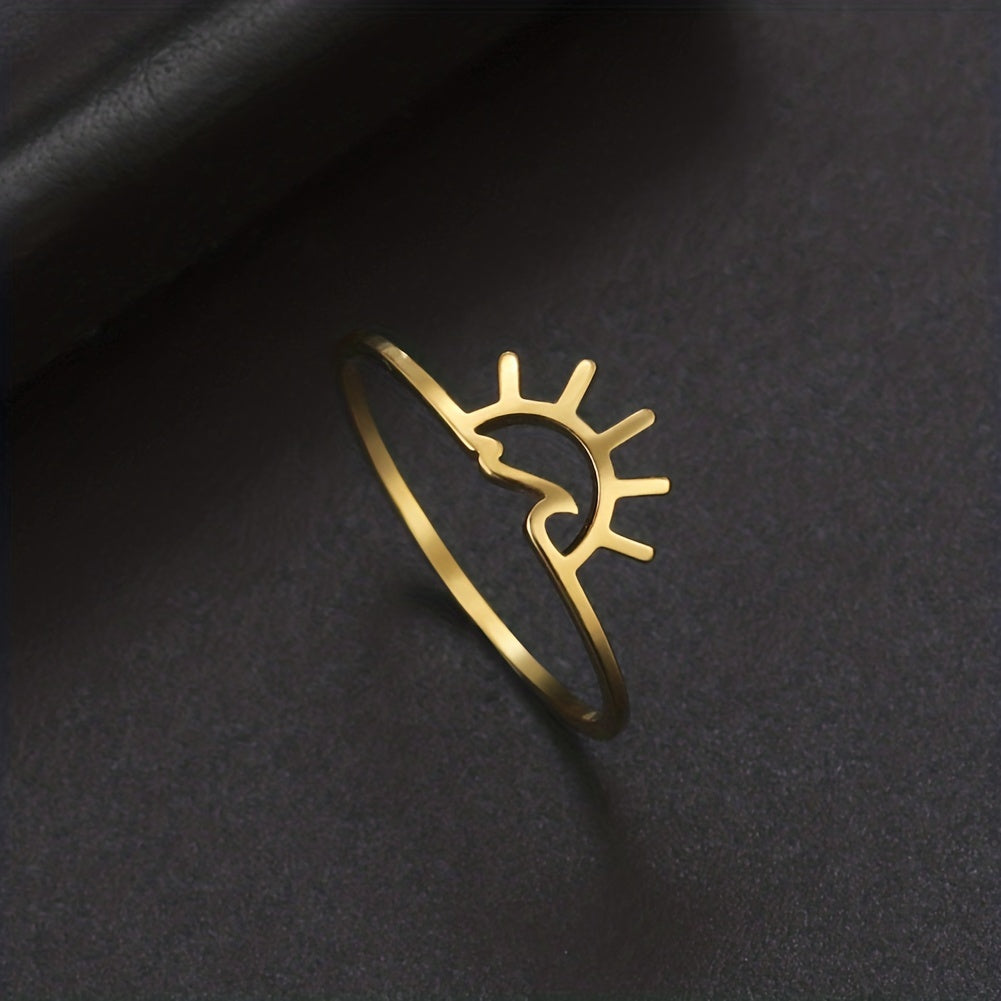 This antique ring brings a touch of bohemian style to any outfit. Made of high-quality stainless steel, it features a retro sun and sea design for a unique look.