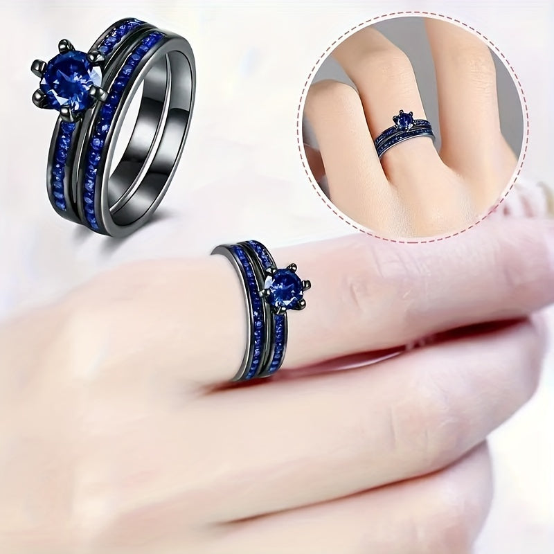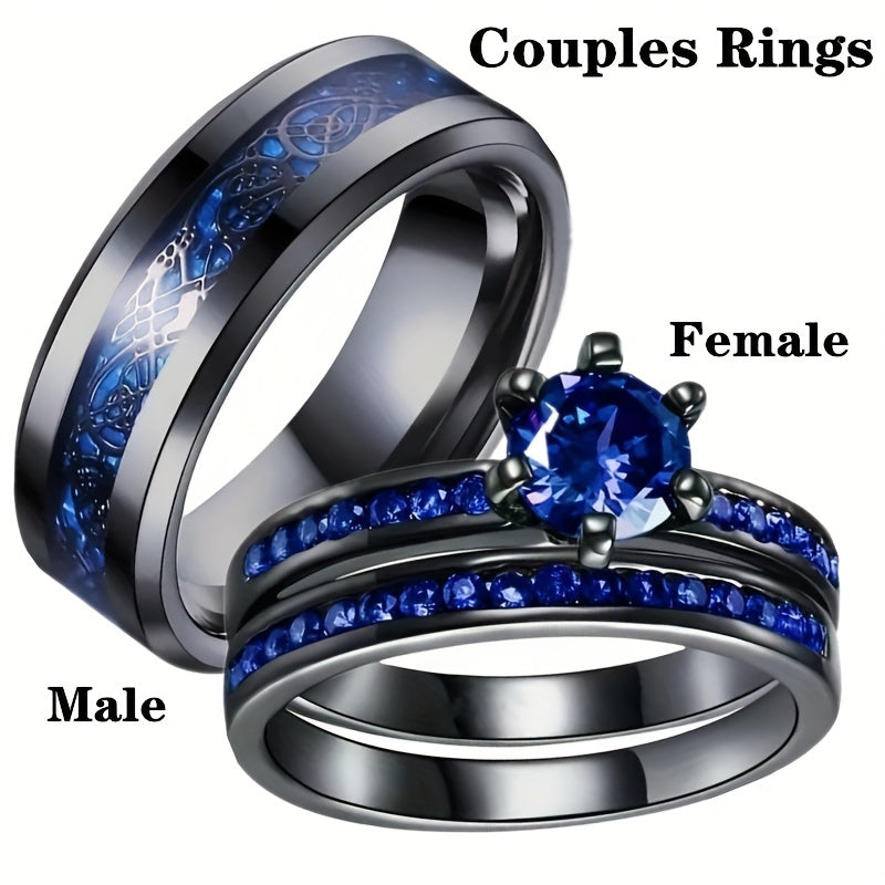 Celebrate your love with this romantic couples ring set made of stainless steel. The set includes a zircon princess engagement ring that symbolizes your everlasting bond. Perfect as a love gift for your special someone.