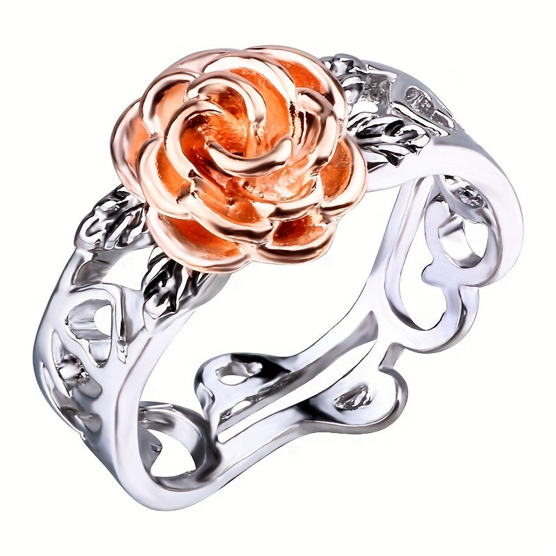 Add a touch of elegance to your look with this vintage-inspired flower ring. The rose gold color adds a romantic touch, while the silver plating adds a classic element.