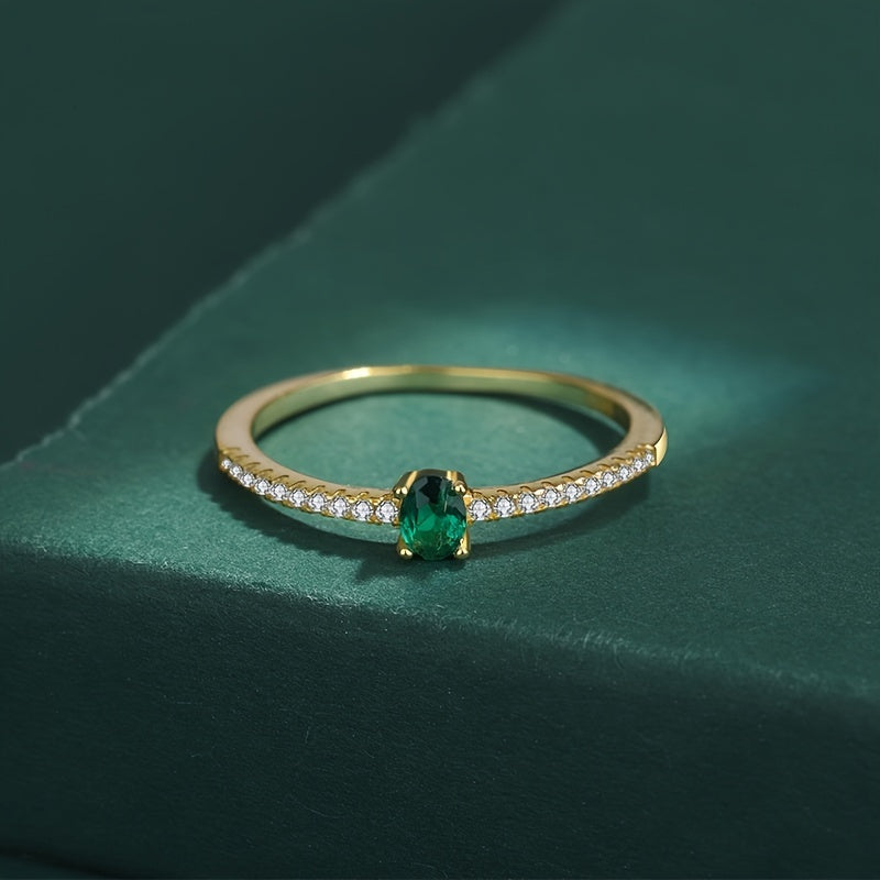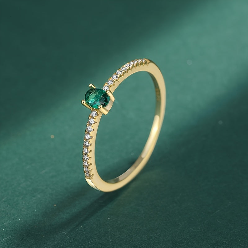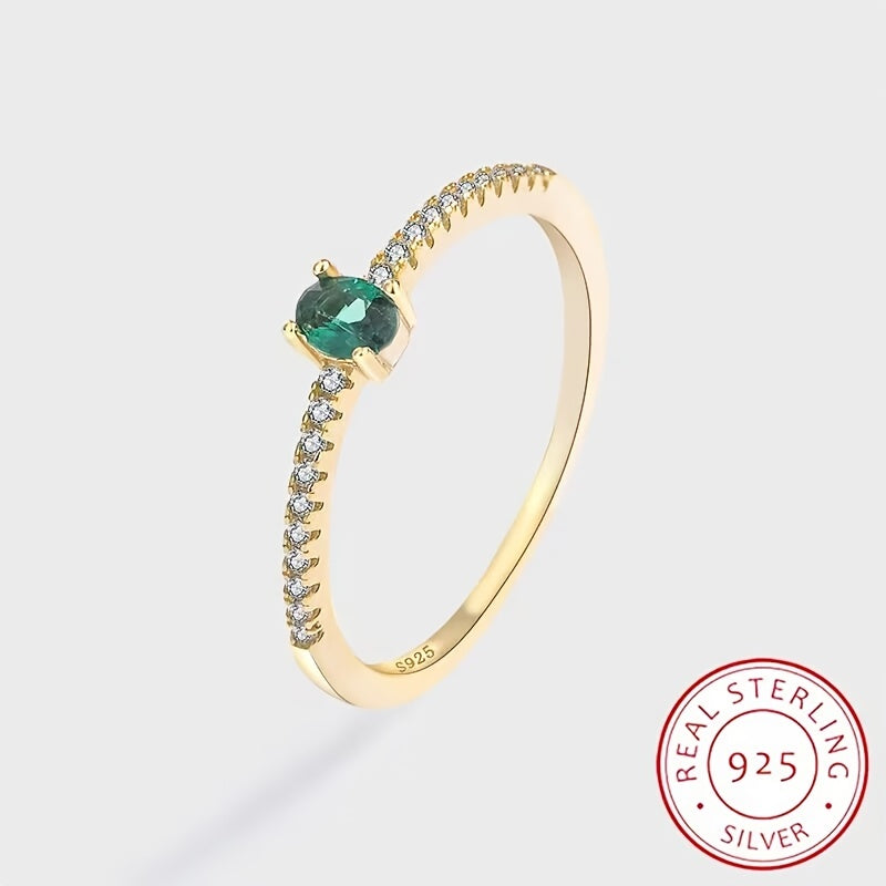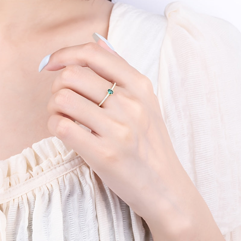 Elegant S925 sterling silver ring featuring a stunning green zircon. This versatile piece is a perfect gift for her on any occasion.