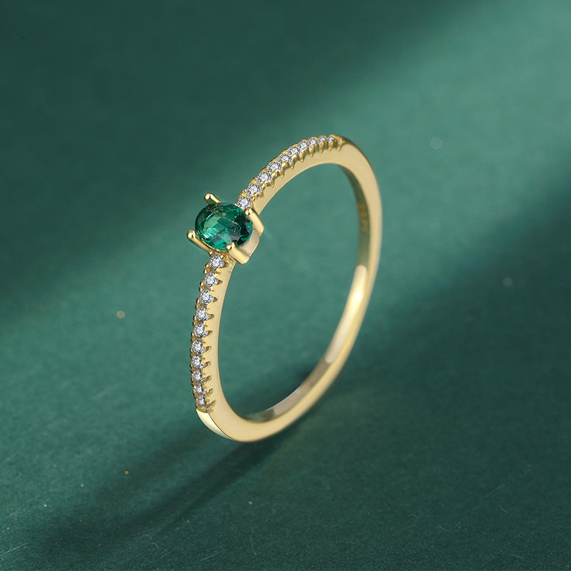 S925 Sterling Silver Green Zircon Finger Ring Jewelry Gift